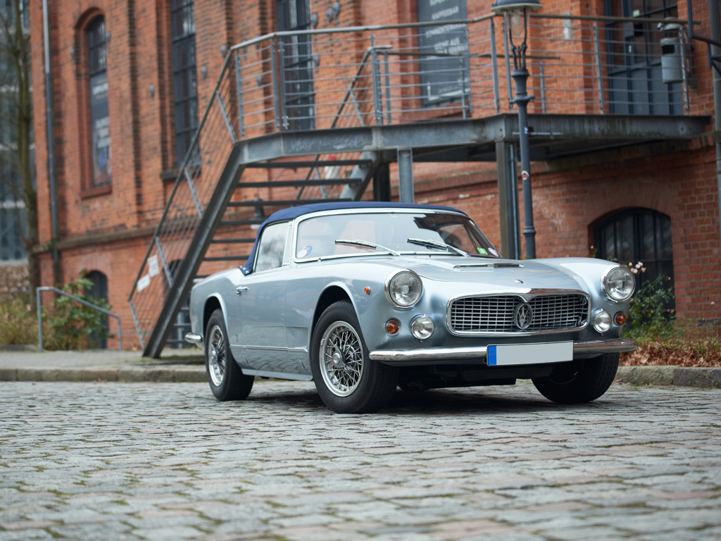 €280,000 - €380,000 EUR One of only 242 examples of the 3500 GT Spyder by Vignale built from 1959 to 1964Factory-finished in Oro Longchamps over Blue; presents in attractive opalescent blueBrakes, transmission, and clutch overhauled by Steinke Sportwagenservice between 2019 and 2023 as part of work costing €39,000Accompanied by a Maserati Technical and Aesthetic Characteristics certificate Compared to almost 2,000 coupés, just 242 examples of the Maserati 3500 GT Spyder with bodywork by Vignale were built.