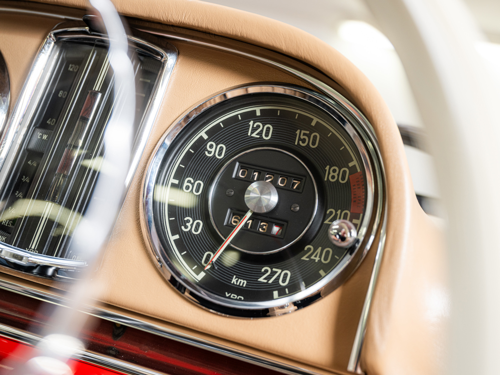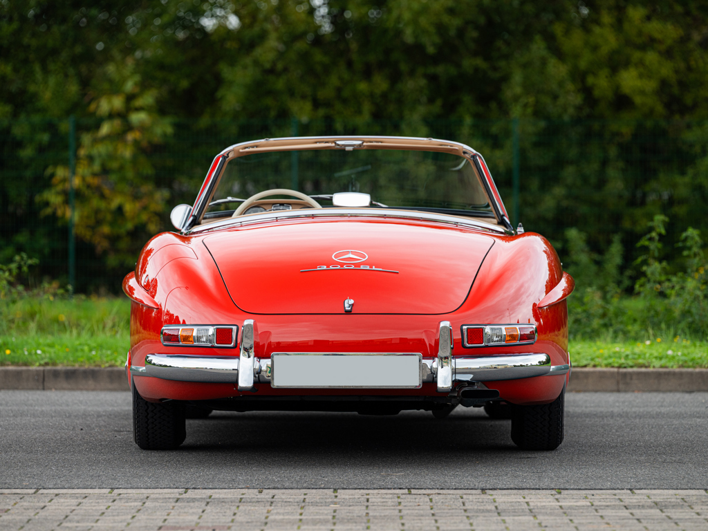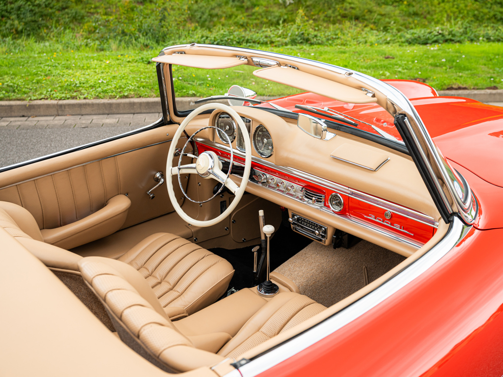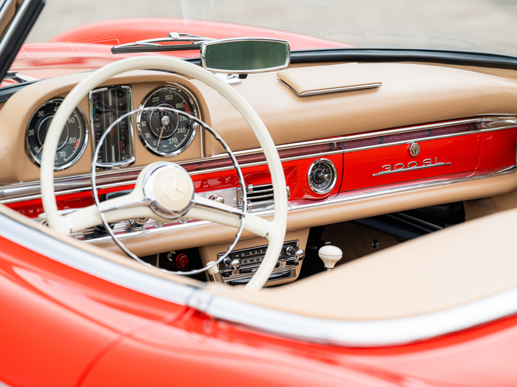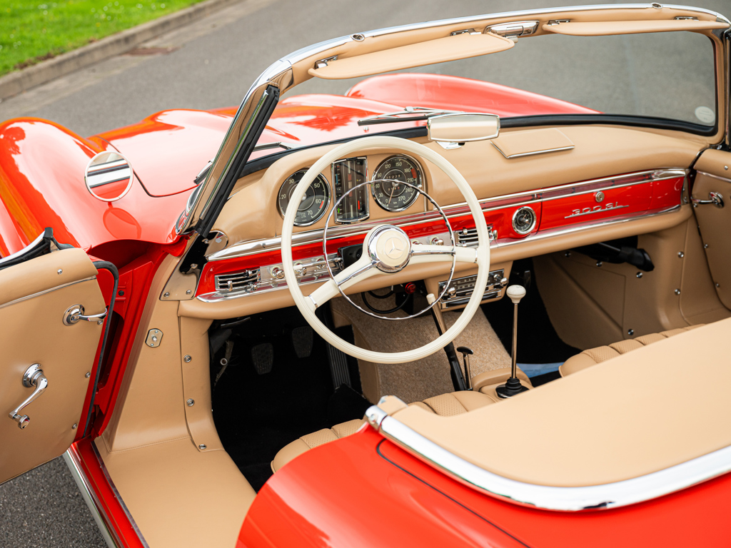 €1,200,000 - €1,500,000 EUR One of 182 examples of the 300 SL Roadster produced in 1962Delivered new to England in January 1962; later exported to GermanyPresents in its factory-correct colour combination of Fire Engine Red over Cream leatherRestored by Mercedes-Benz Classic between February 2015 and September 2016Matching-numbers body, engine, gearbox, rear axle, plus left and right front axlesAccompanied by factory data card copy and Mercedes-Benz Classic restoration book To reinvigorate the 300 SL as production of the competition-bred Gullwing coupé came to an end in 1957, Mercedes-Benz unveiled a beautiful Roadster successor.