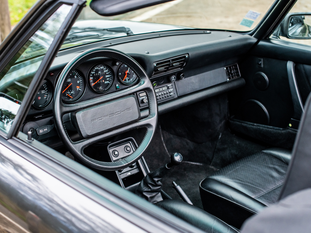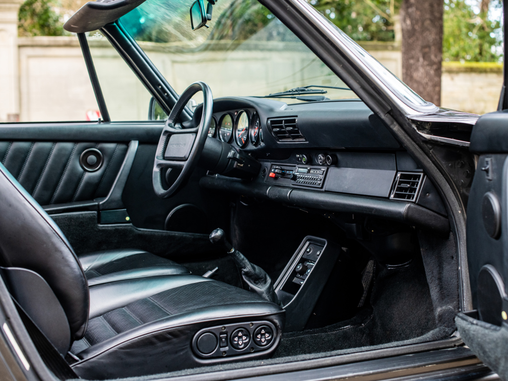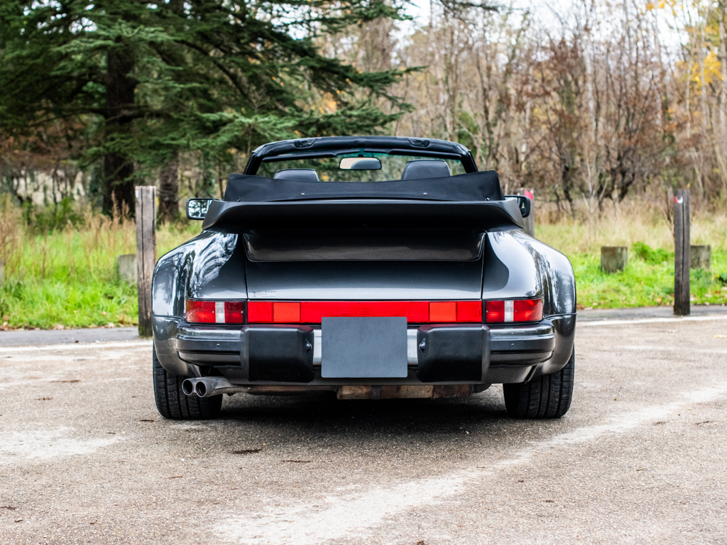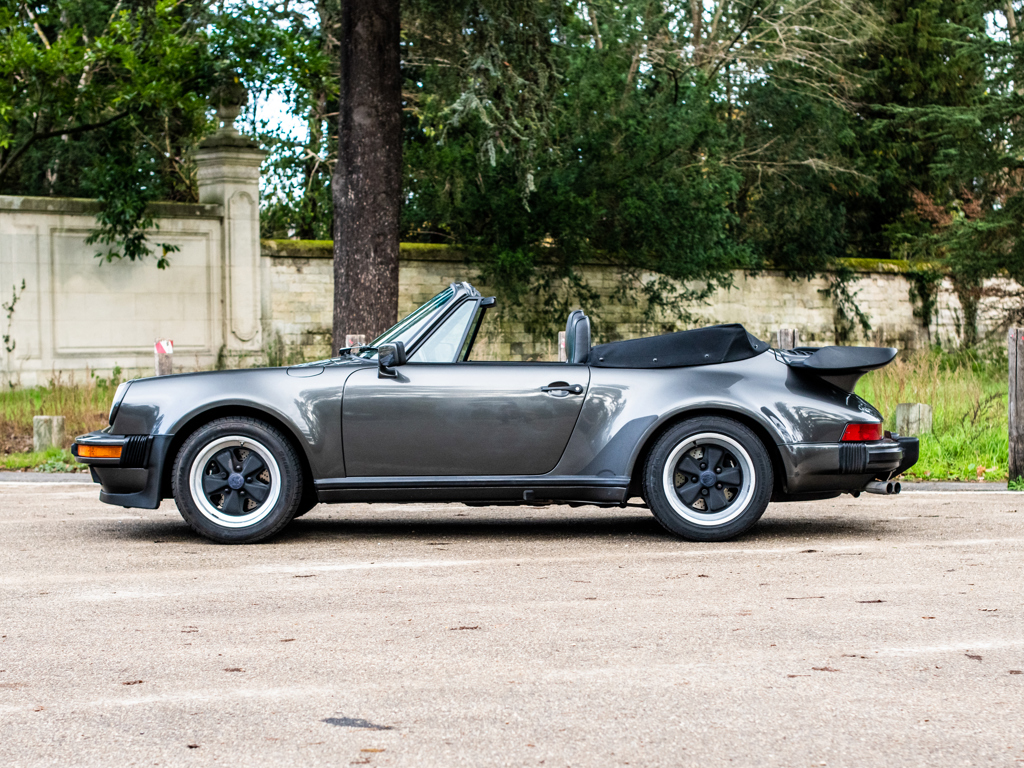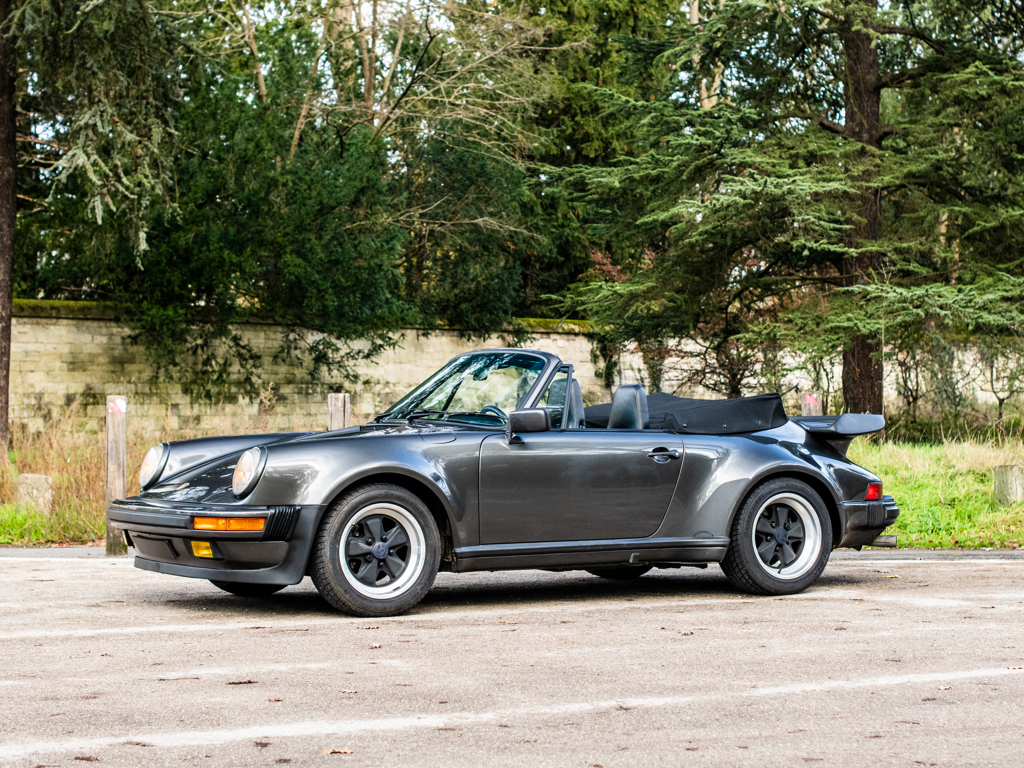 Delivered new to France and retained by a single owner One of just 724 examples built to Turbo Cabriolet configuration for the 1989 model year and to feature the desirable Getrag “G50” five-speed gearbox Powered by a Type 930/68 3.3-litre flat-six engine Finished in its factory-correct colour combination of Slate Grey Metallic with a Black soft-top roof; complemented by a Black leather interior Offered with its factory-supplied Porsche books and manuals Livrée neuve en France, première main Un des 724 exemplaires de Turbo Cabriolet modèle 1989, doté de la désirable boîte Getrag "G50" cinq rapports Équipée d'un 6-cylindres à plat 3,3 litres Type 930/68 Combinaison de couleurs correcte d'usine, Slate Grey métallisé avec capote noire et sellerie en cuir noir Vendue avec ses manuels et carnets Porsche d'origine
