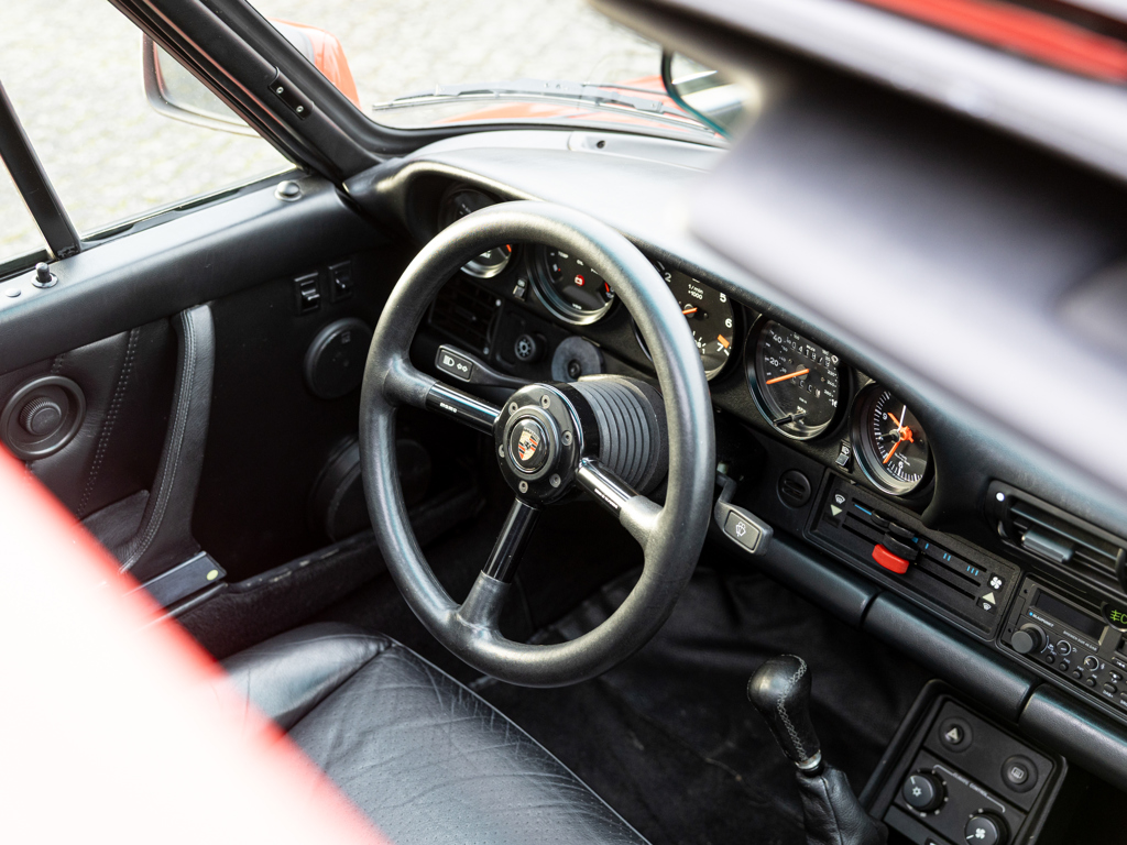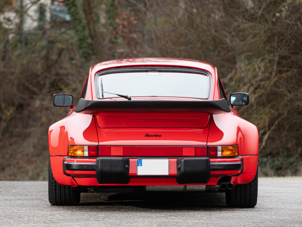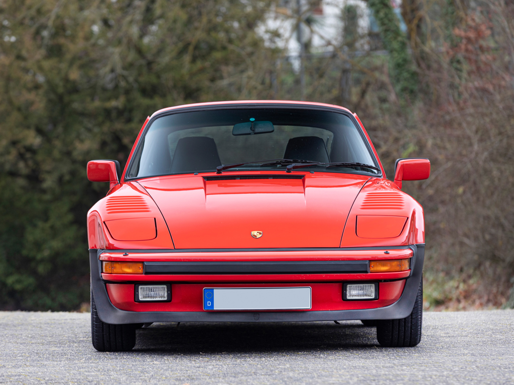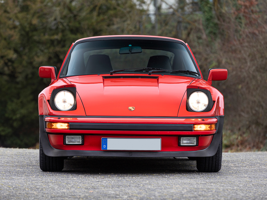 €160,000 - €200,000 EUR Originally equipped with the M505 ‘Flat-Nose’ option code, a $23,000 extraSpecified with a limited-slip differential, electric sports seats, and electric sunroofDelivered to New York in April 1988, prior to long-term Canadian ownershipPresents in its factory-correct Guard Reds over Black colour combinationMatching-numbers flat-six engine and gearbox rebuilt by Manfred Rugen between 2021 and 2022 in work costing €62,000 This Porsche 911 Turbo was completed on 23 November 1987 ahead of delivery in the United States.