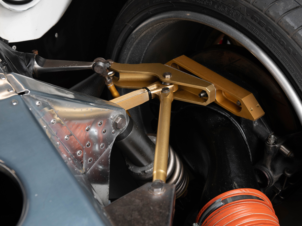 This Porsche 962, chassis CK6-88, has a rich racing history including Le Mans and IMSA events, driven by notable drivers such as Mario Andretti and Derek Bell. It was converted for road use in the UK in 2022 and comes with a spares package, making it a unique offering for collectors and enthusiasts.