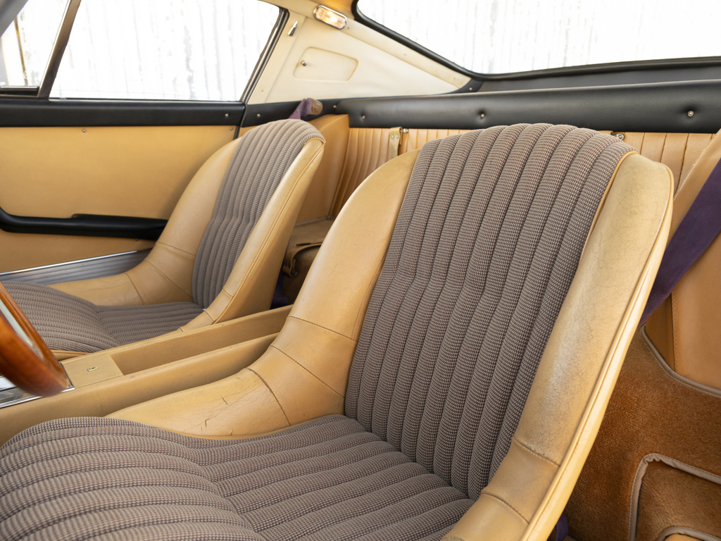 $3,400,000 - $3,600,000 USD One of only six 275 GTB/4 examples finished in the elegant combination of Rosso Rubino over Beige VM 3218, further distinguished as one of only a small number of examples to receive the highly desirable corduroy cloth seat insertsNever fully restored and believed to retain its factory leather interior and chromeFerrari Classiche Red Book certified as “full numbers-matching,” retaining its original engine, gearbox/transaxle, and coachworkOdometer displayed 21,277 km (~13,221 mi.) at cataloguing, with documented odometer readings going back 50 years—making this one of the lowest documented mileage examples in existenceExtremely well-cared-for example with only five caretakers over the last 55 years; benefits from a 1990s mechanical overhaul by the legendary Bob WallaceExhibited in the Preservation Class at the 2012 Pebble Beach Concours d’Elegance and at the 2013 The Quail,...