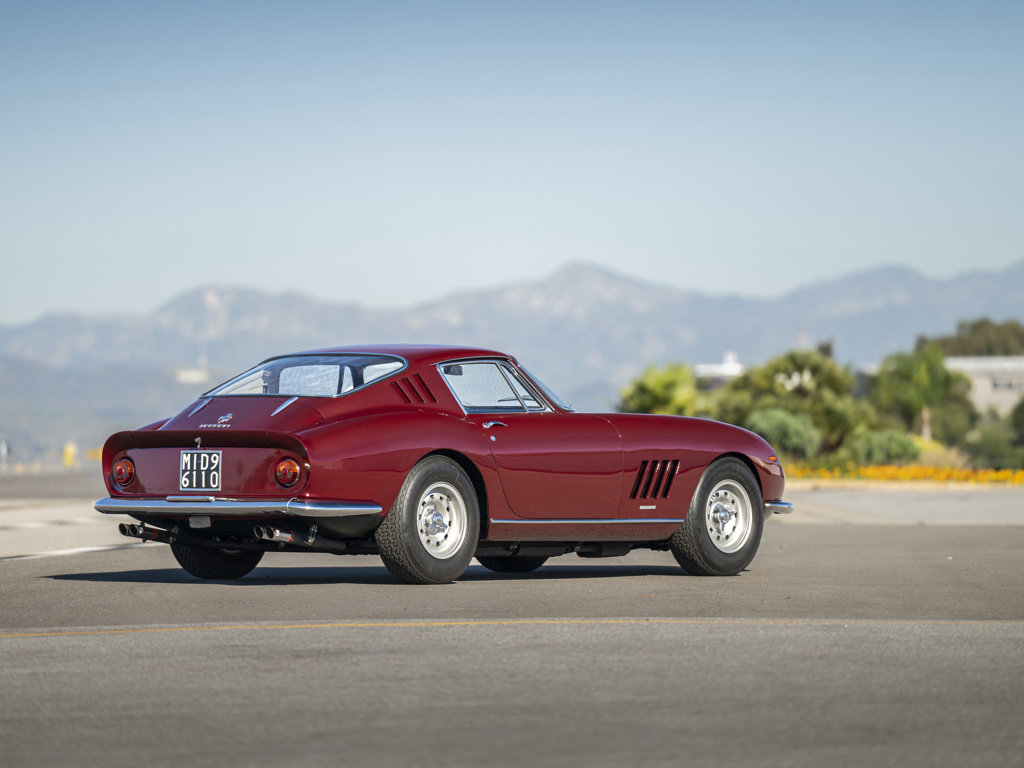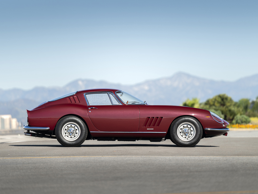 This 1967 Ferrari 275 GTB/4 is a rare, matching-numbers example with low mileage and a well-documented history. Finished in Rosso Rubino over Beige, it boasts corduroy seat inserts and has been shown at Pebble Beach and The Quail.