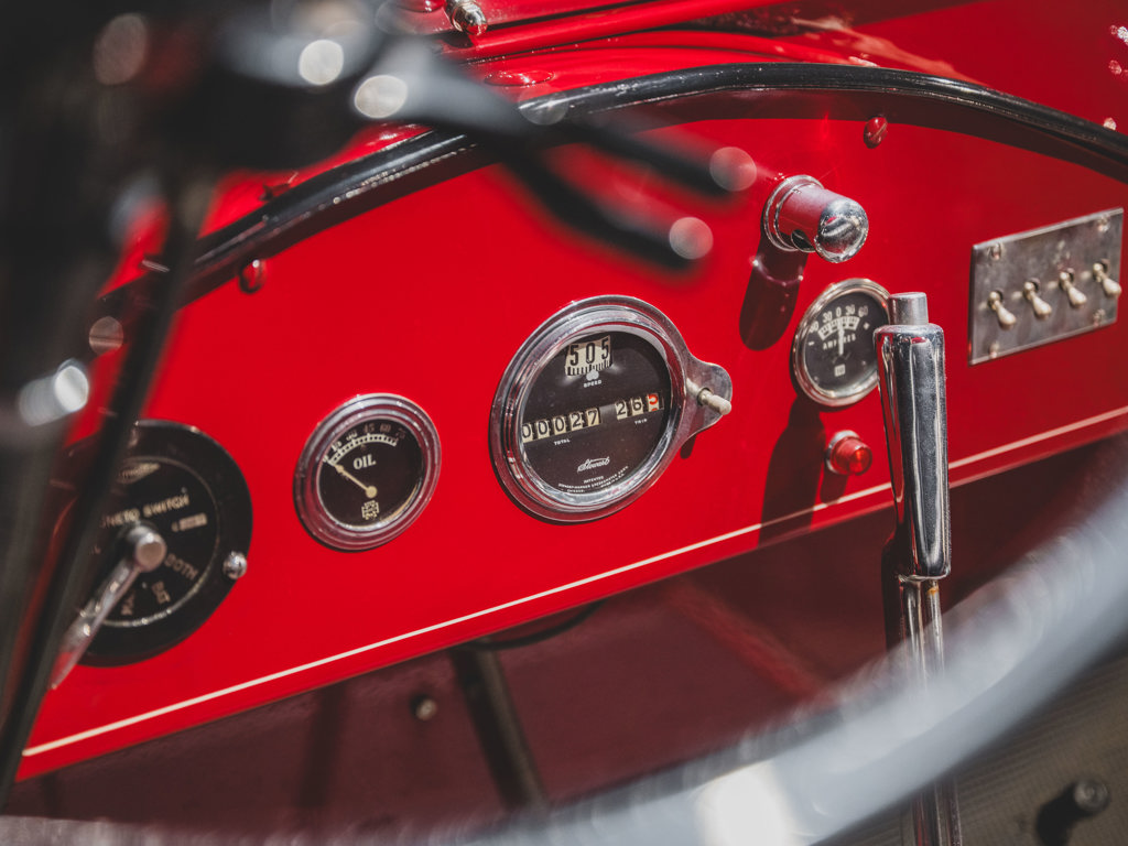 The car is described as having an "attractive and well-detailed older professional restoration" and being an "unusually finely restored example". It has "correct lighting, accessories, and equipment", suggesting it is very well-maintained with minimal cosmetic imperfections.