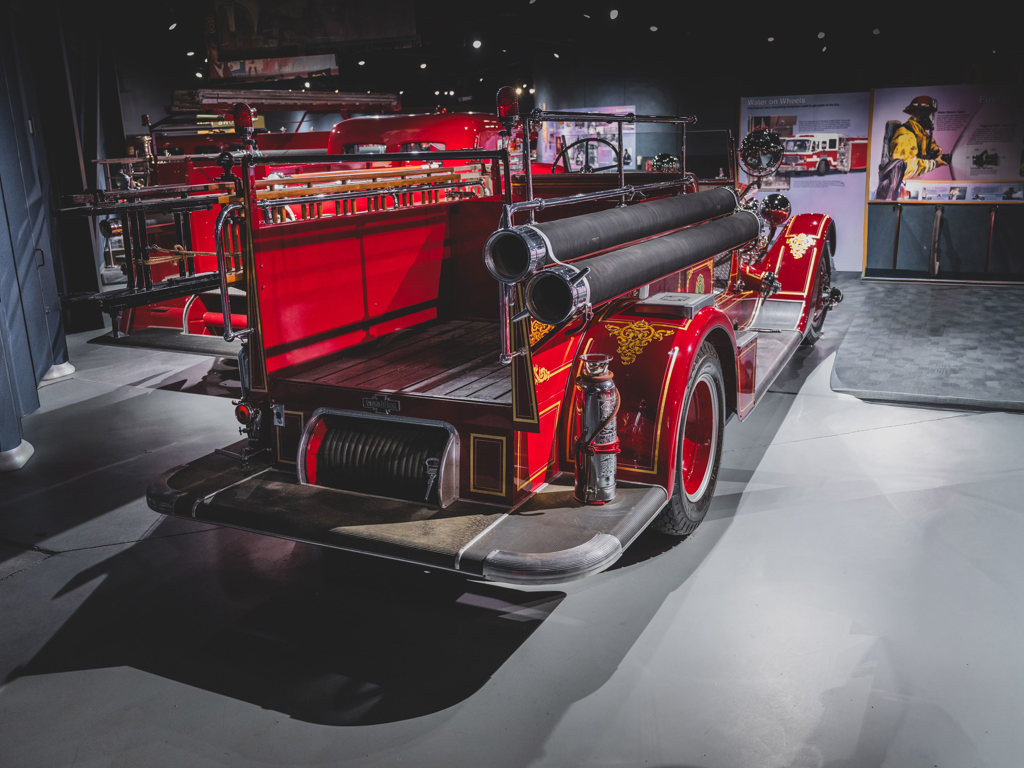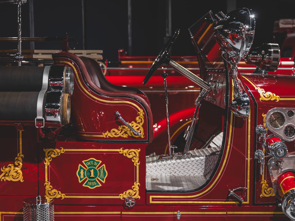 This 1935 American LaFrance Type 415 RC Pumper, offered from The American LaFrance Corporate Collection, boasts a meticulous restoration by Andy Swift and a powerful 754-cid V-12 engine. Originally delivered to Oyster Bay, Long Island, it's a revered model with outstanding original scroll work, making it a prized piece for collectors.
