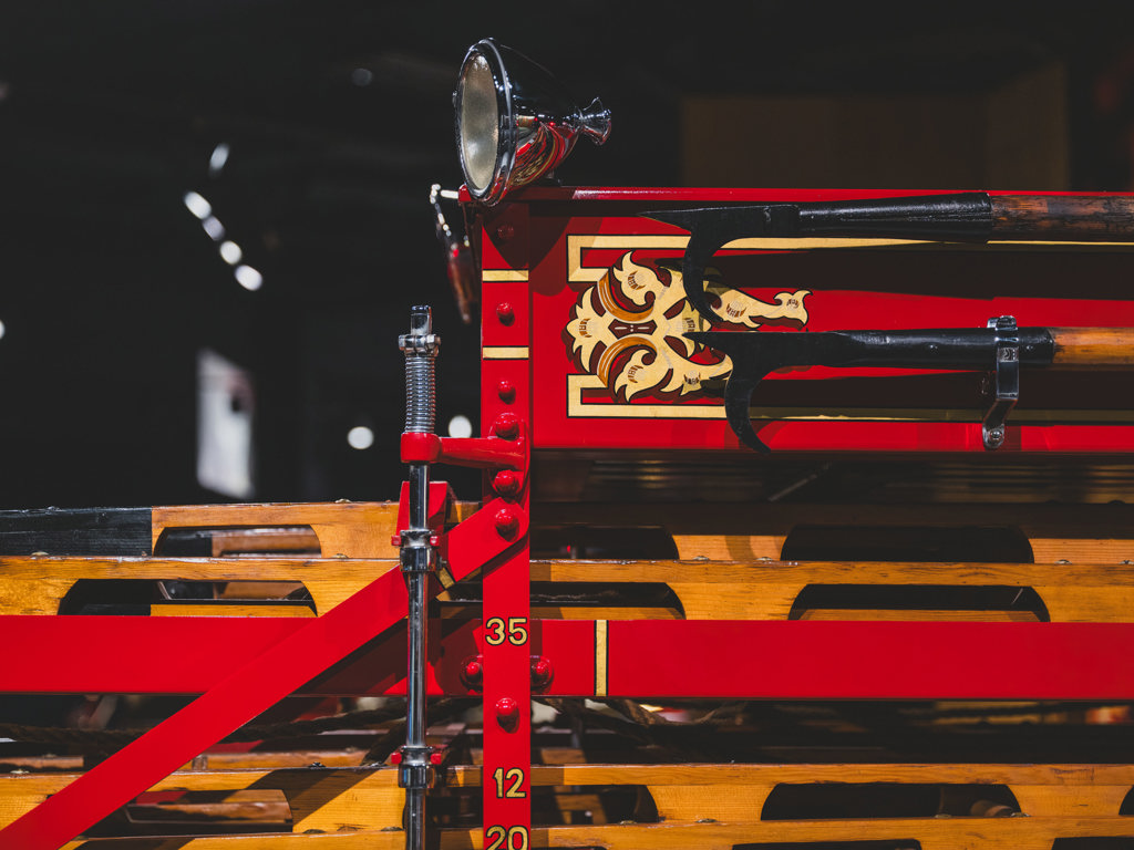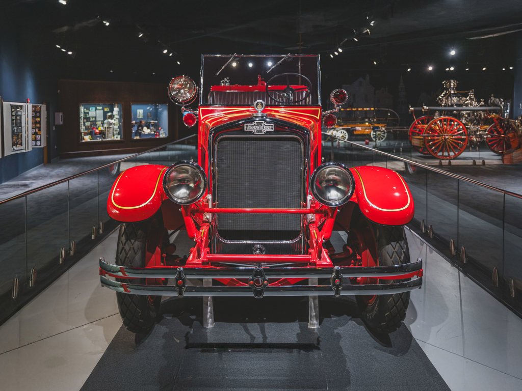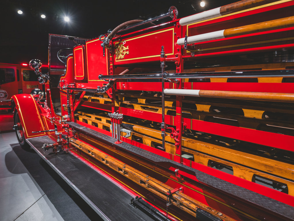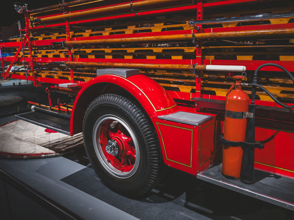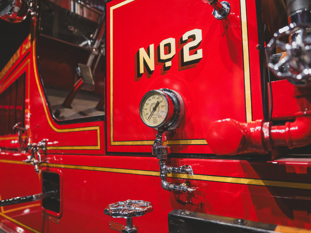 One of the most impressive vehicles in the collection Delivered new to Gardner, Massachusetts, with exterior styling updates Very rare surviving double-bank “ladder truck” model 120-hp Type 12 T-head six-cylinder engine and dual chain drive Older high-quality, well-detailed restoration Enormous both in scale and character; a showstopping acquisition