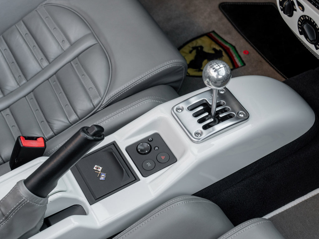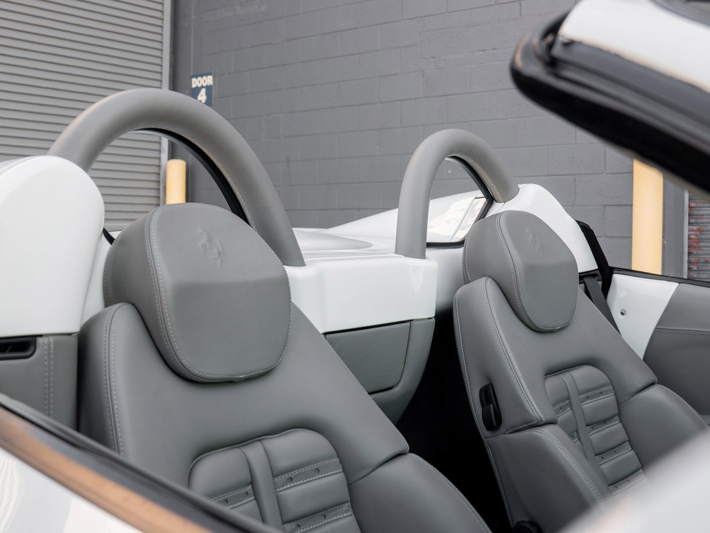Showstopping in Bianco Avus over gray leather with optional color-matched dashboard, steering wheel, roll bar, and stitching Full timing belt service completed in February 2025 plus new Bridgestone Potenza tires, fresh fluids and filters, and a new canvas convertible soft top Displays just 13,343 miles at cataloguing time Powered by a 3.6-liter V-8 engine paired with a rare and desirable six-speed gated manual transmission Accompanied by service records, window sticker copy, and owner’s books