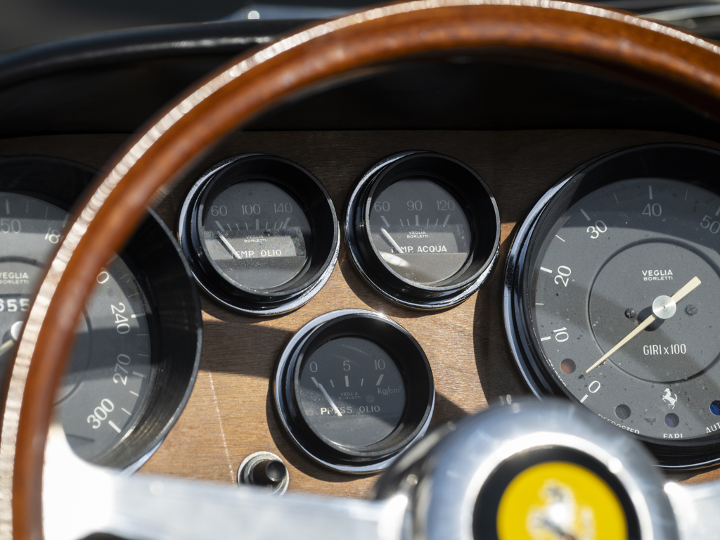 This 1969 Ferrari 365 GTS by Pininfarina is one of only 20 built. It retains its matching-numbers engine and transaxle and has been recently freshened mechanically and cosmetically.