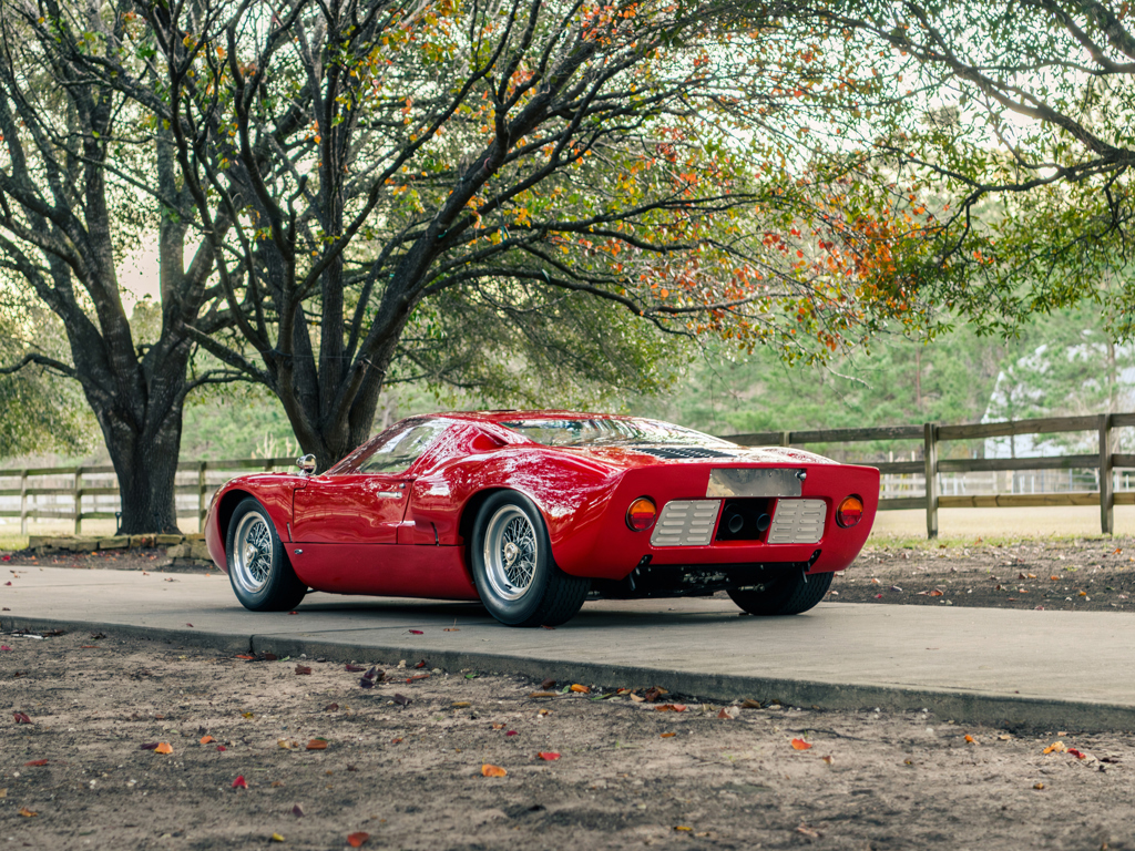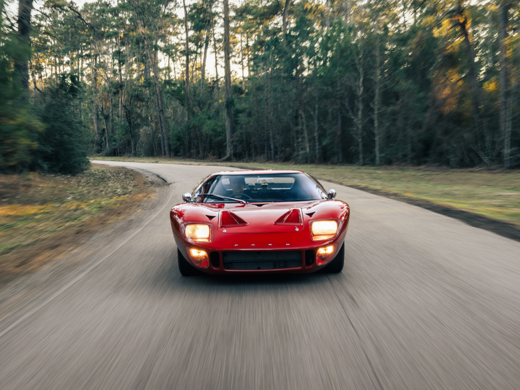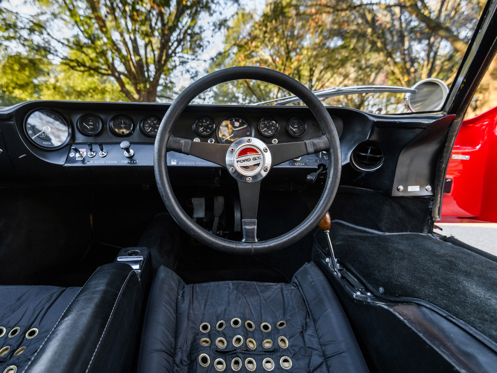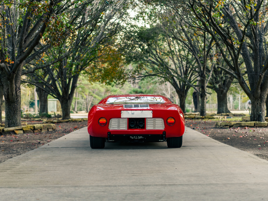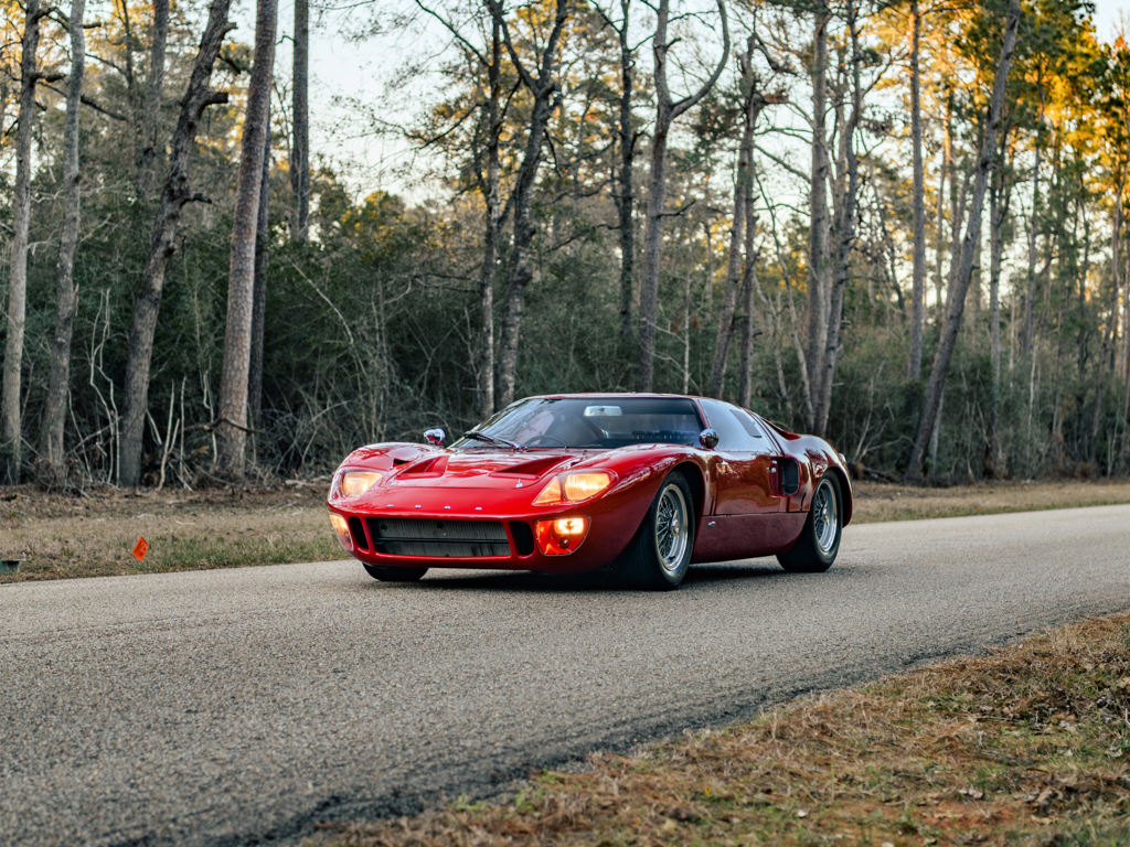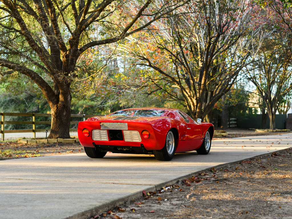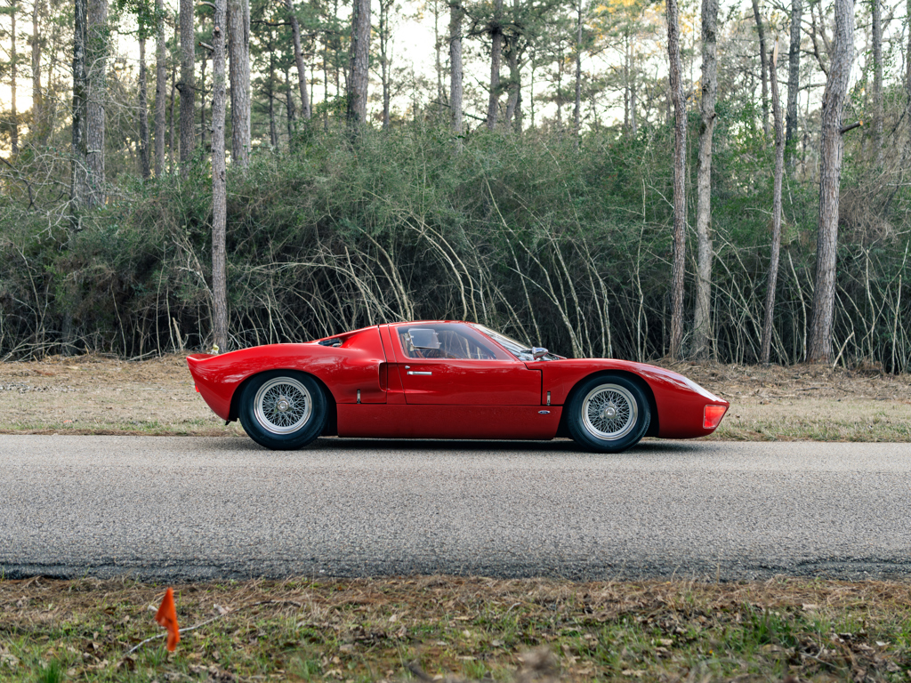 One of just 31 Mk I examples specified as road cars The GT40 famously shown front and center in a Slough factory photo Originally shipped to Dearborn, Michigan, for Ford publicity use in December 1966 Prominently featured in the famous Tasca Ford dealership photo alongside the 429 Cobra Jet prototype Sold to its first private owner by noted GT40 dealer Al Grillo Ford of Lynn, Massachusetts Repainted and mechanically refreshed in the 2000s by Harley Cluxton III’s Grand Touring Cars, Inc., of Scottsdale, Arizona Presented in the original factory shade of Carmen Red Powered by Ford’s legendary 289 High Performance V-8 featuring original sand-cast Weber carburetors; backed by a five-speed ZF transaxle Documented with Ford Advanced Vehicles (FAV) Production Car Record Sheet Known ownership chain from new; recorded history in the SAAC World Registry of Cobras & GT40s, 4th Edition, and Ronnie Spain’s 2024 magnum opus Ultimate GT40 – The Definitive History