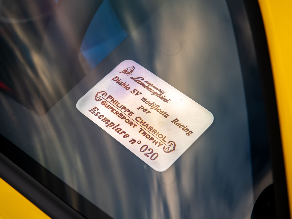 $700,000 - $900,000 USD An impressive example of Lamborghini’s first factory-produced racecarThe 20th of 34 created to compete in the single-make Philippe Charriol SuperSport TrophyDriven by ex-Minardi Formula One driver Luis Pérez-Sala and Spanish businessman Alberto CastellóReportedly campaigned in GT European Championships following its participation in the SuperSport TrophyPreviously owned in Japan; converted for road use and fitted with air conditioning Accompanied by service invoices dating back to its US importation in 2023An excellent candidate for historic racing competition The Diablo SV-R is Lamborghini’s first factory-developed racecar, a cornerstone in the company’s burgeoning motor sports program and the precursor to production-based racecars now competing in the incredibly popular FIA GT3 class.
