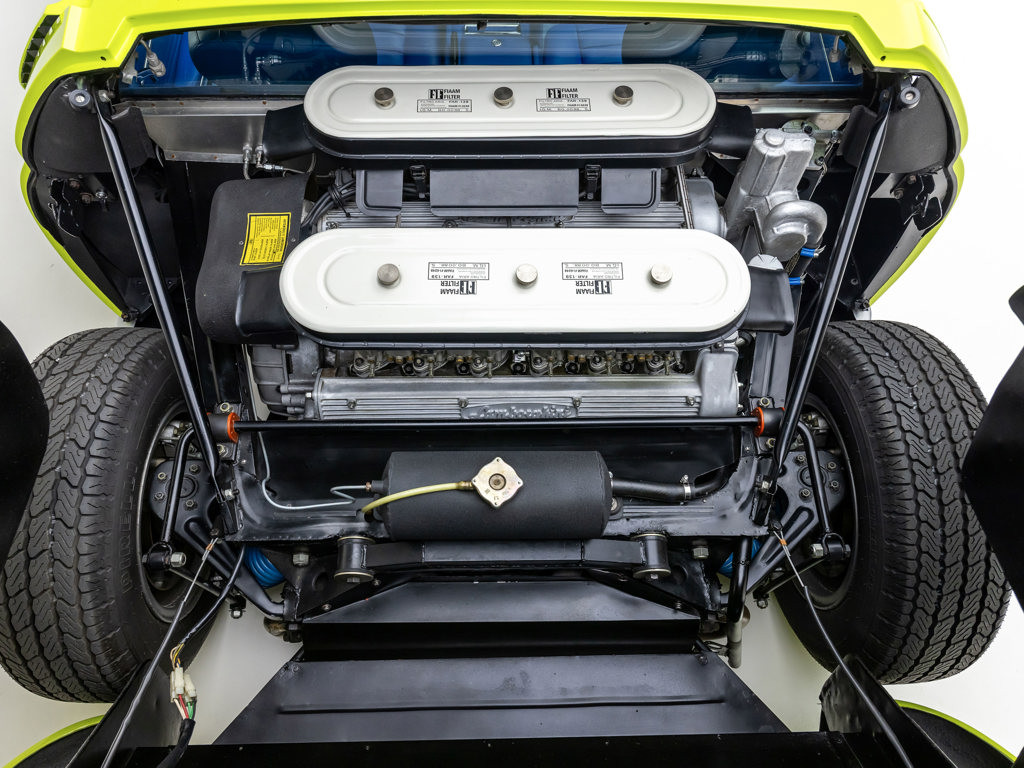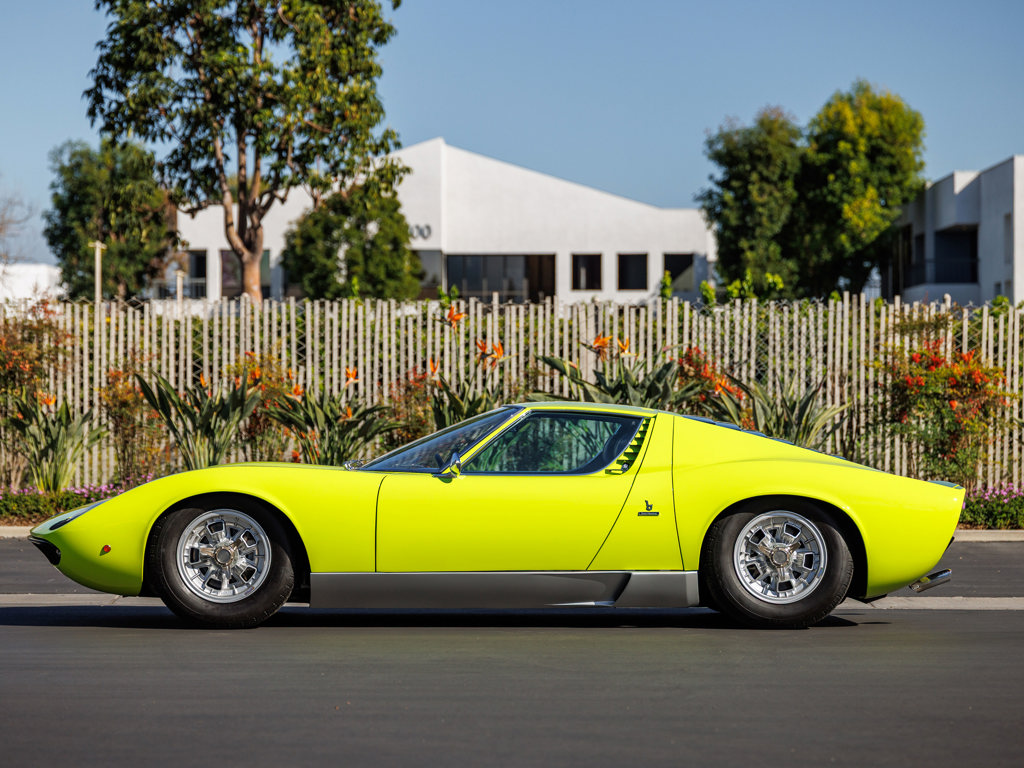 An early example of the 338 Miura P400S models built Benefits from mid-2000s mechanical restoration by Lamborghini specialist Bobileff Motorcar Company Refinished in 2017 in the original colors of Giallo Miura over Bleu Equipped with numbers-matching V-12 engine Regularly maintained since restoration, including documented 2026 service by Fast Cars Ltd.