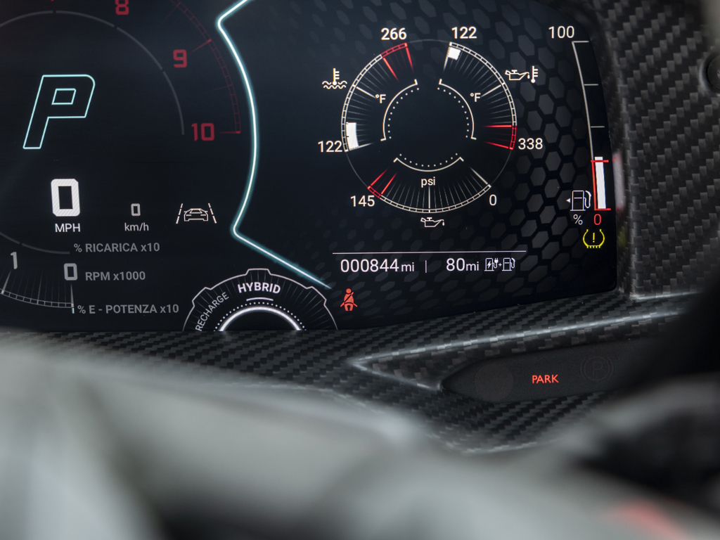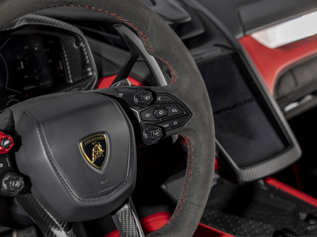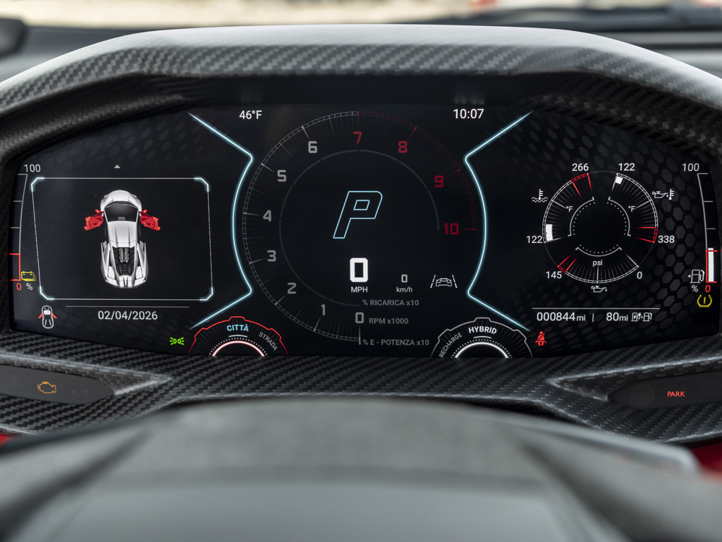 Lamborghini’s first plug-in hybrid supercar, ushering in a new era of power, performance, and prestige Single ownership; showing 844 miles at cataloguing time Equipped from the factory with $112,700 in options Nero Nemesis matte paintwork over Nero leather interior with red contrast trim and stitching Equipped with smartphone interface, passenger display, and fully electric, heated seats