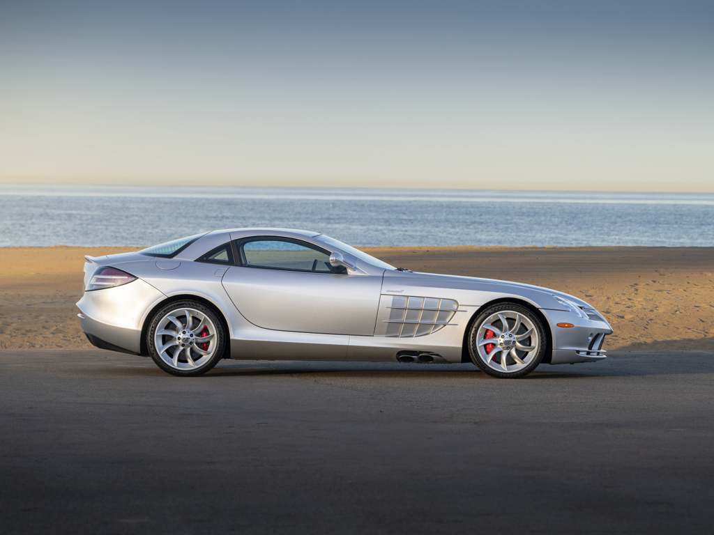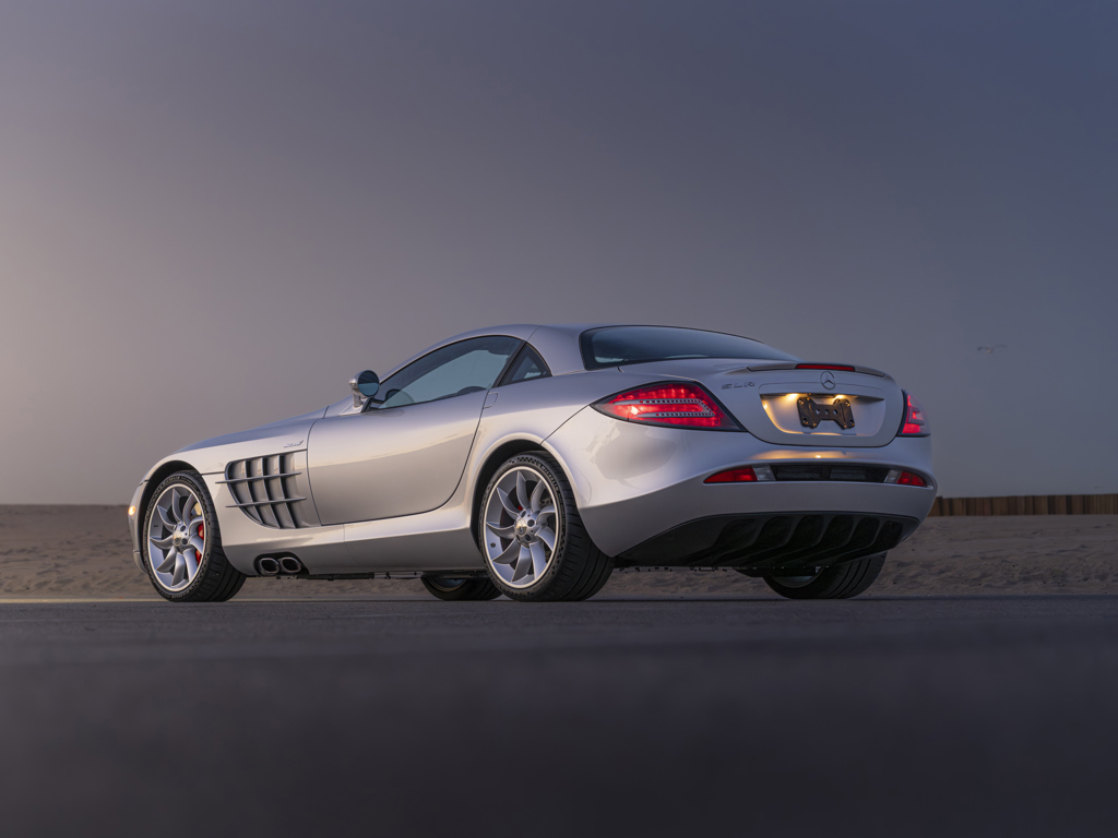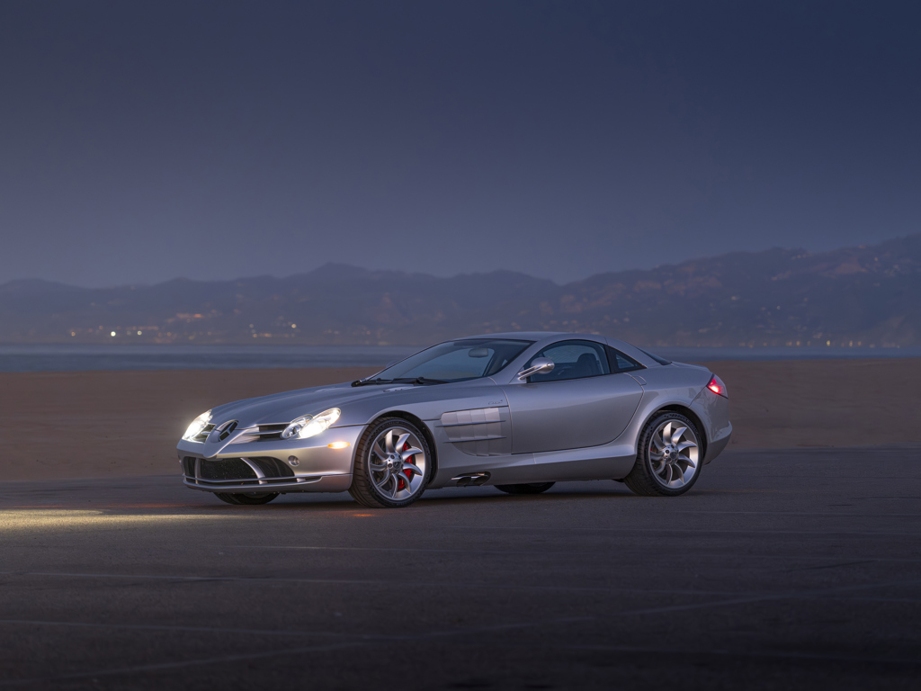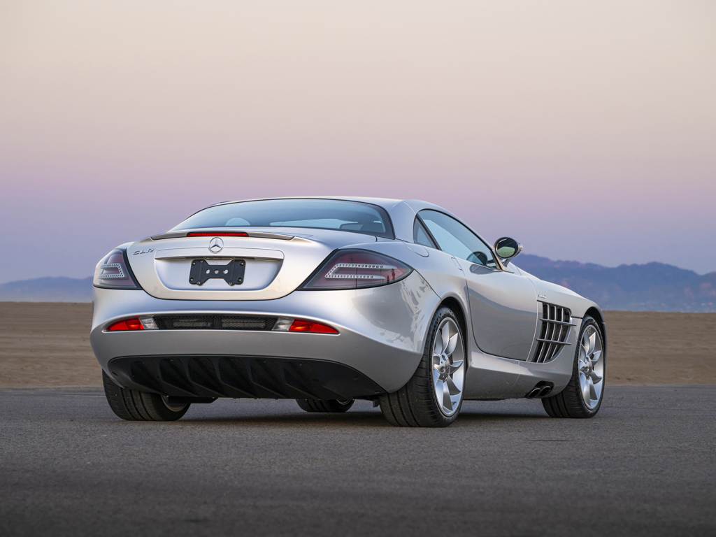 Offered Without Reserve | $350,000 - $450,000 USD One of 1,412 coupes producedA California car its entire life Showing less than 4,500 miles at cataloguing timeFactory-correct Crystal Laurite Silver over optional Black “Silver Arrow” LeatherThe remarkable result of a storied partnership between two Formula 1 giants The SLR McLaren, jointly developed by Mercedes-Benz, AMG, and McLaren Group, stands out from other supercars of its era in offering a level of luxury, comfort, and everyday usability not typically seen in its competitors.
