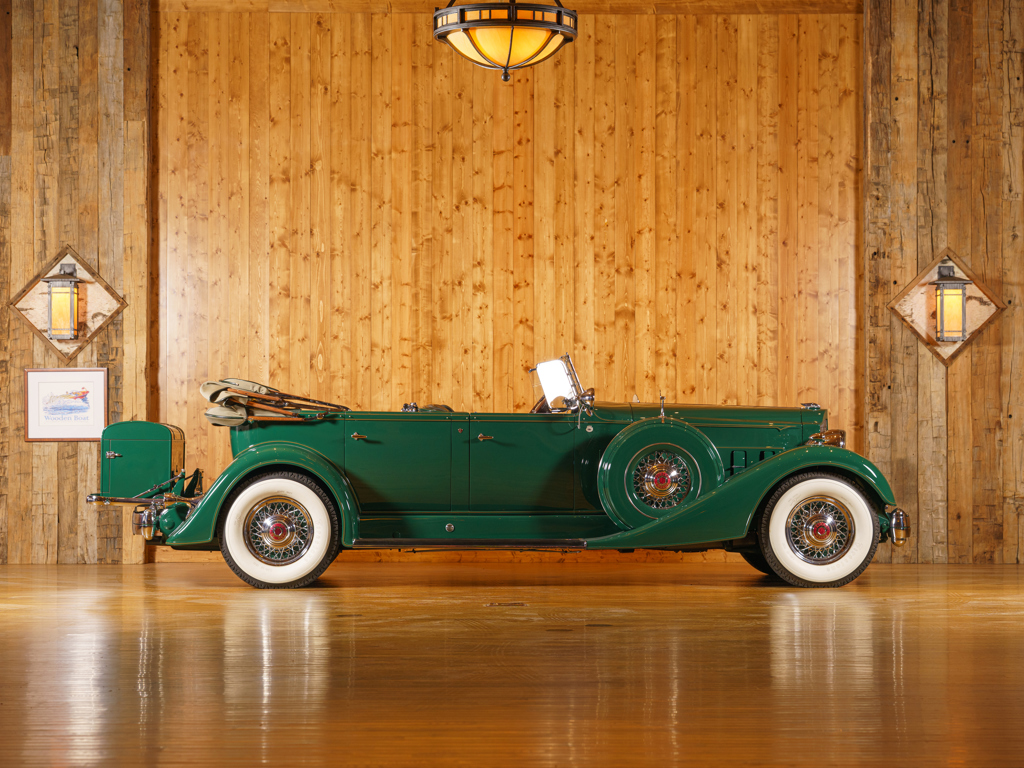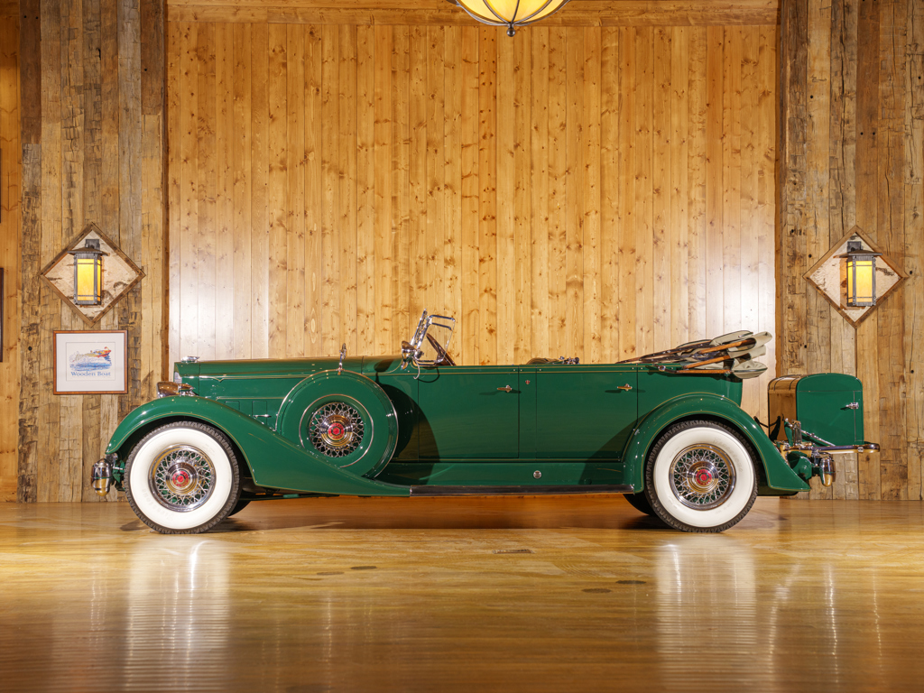 This 1934 Packard Twelve is one of ten five-passenger phaetons built on the 1107 chassis. It has a known history, older concours restoration, and has been freshened cosmetically, making it a desirable Packard.