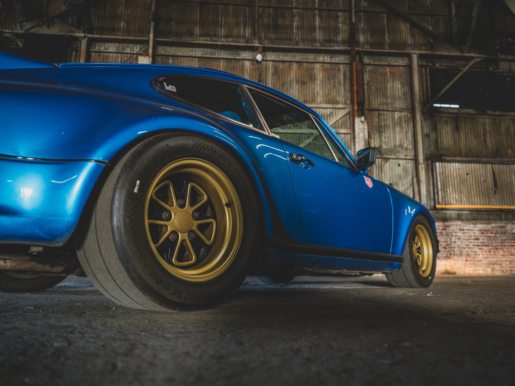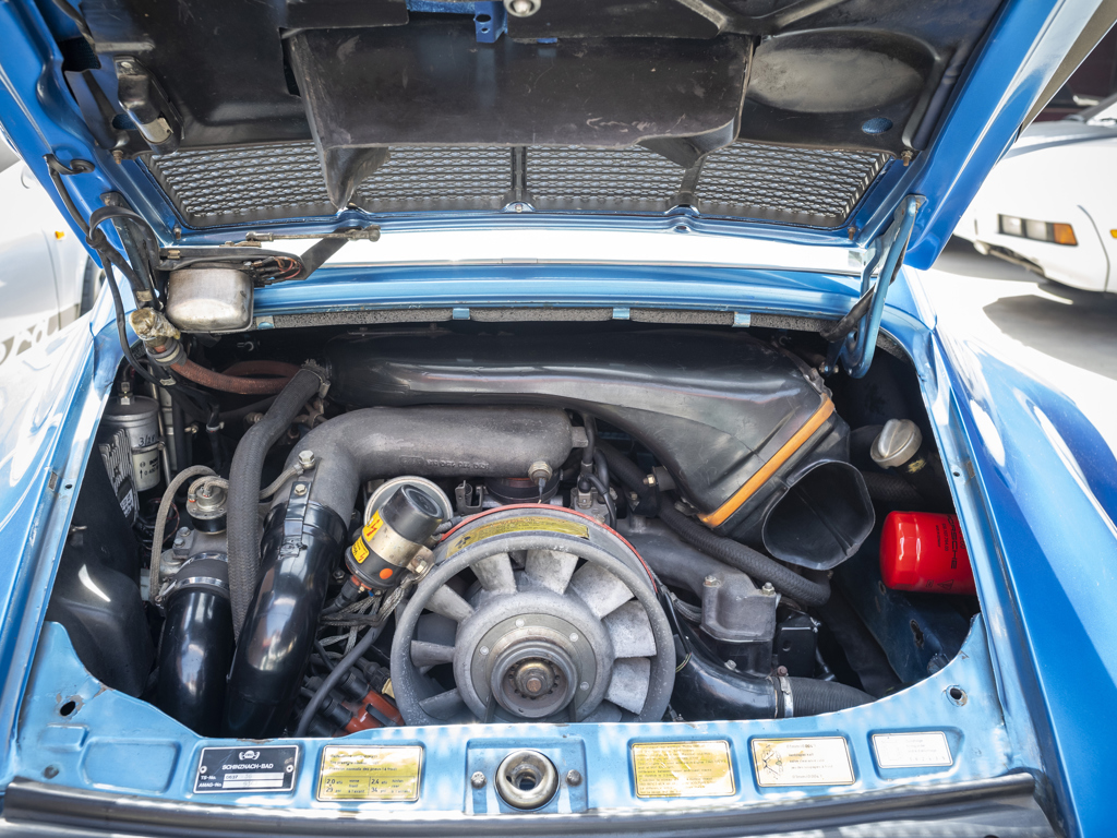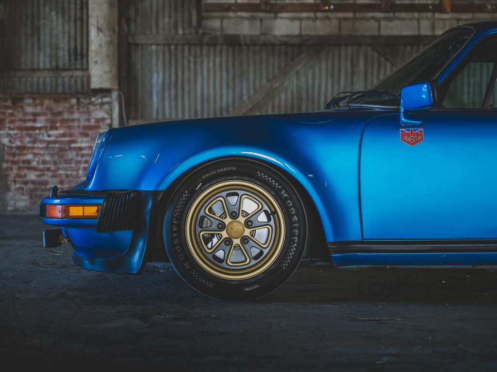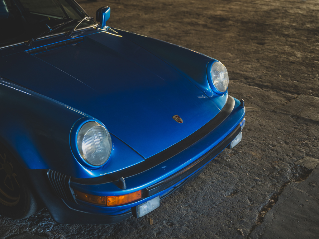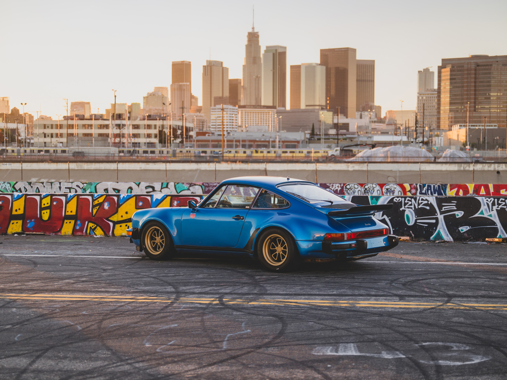Desirable Swiss-delivery, early production, sunroof-delete 911 Turbo Acquired by Magnus Walker in 2013 and re-finished in a striking interpretation of Minerva Blue Retains numbers-matching 260-hp 3.0-liter turbo engine and equipped with a RarlyL8 Hooligan exhaust Significantly debuted Walker’s collaboration with Fifteen52; fitted with the very first set of their Outlaw Fuchs-inspired wheels