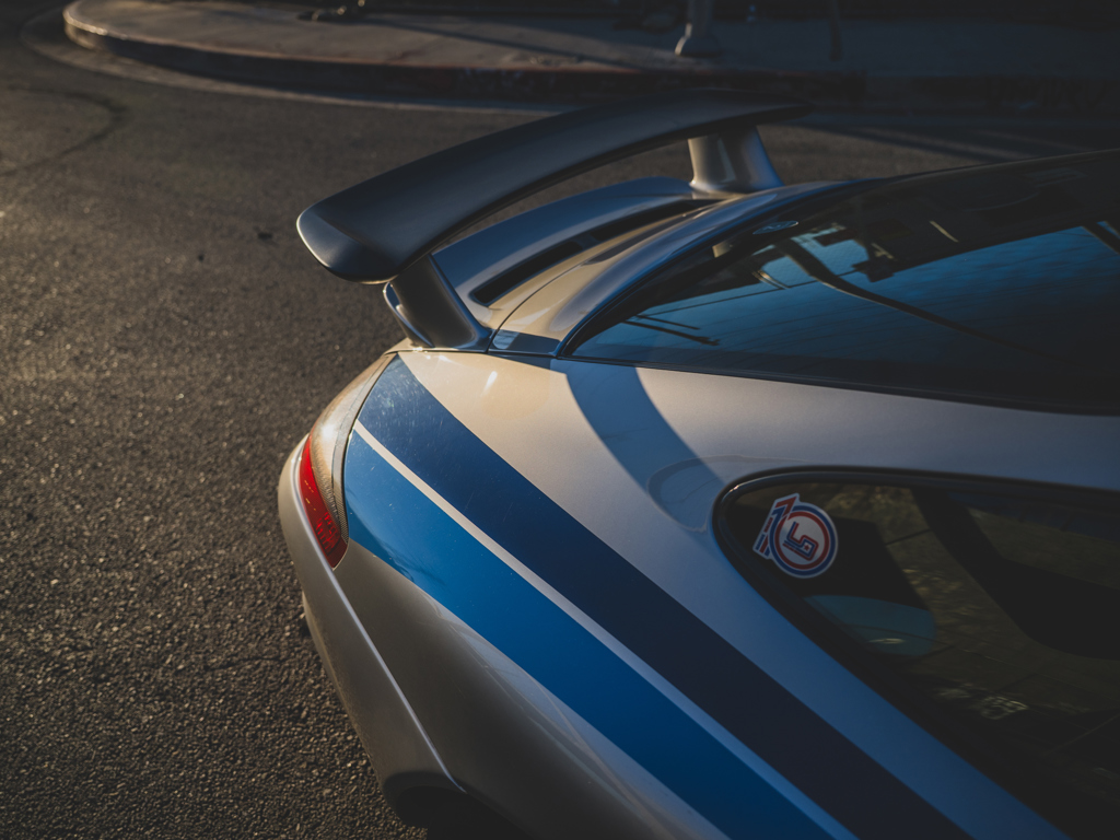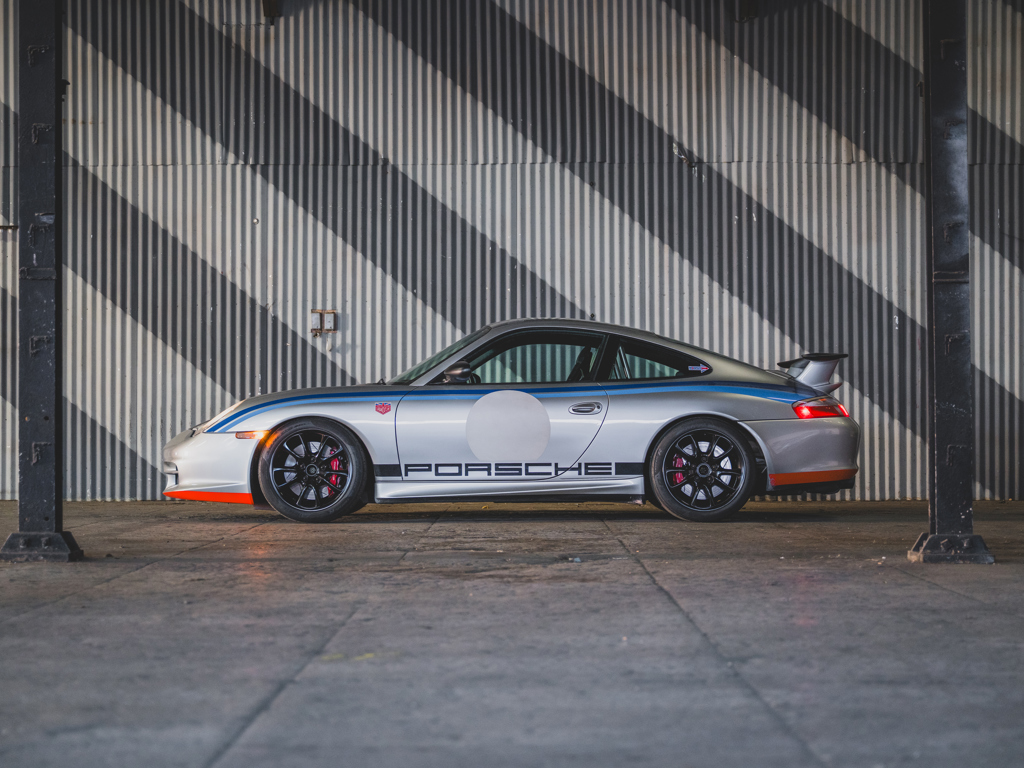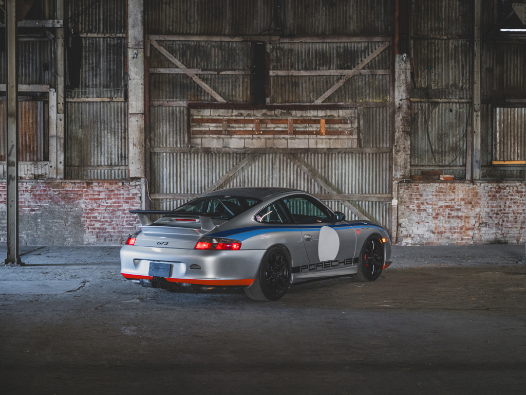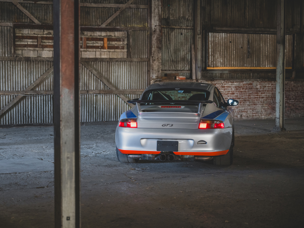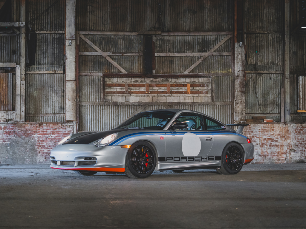 First year for the groundbreaking 911 GT3 in the United States A California car since new, acquired by Magnus Walker in 2016 Factory-correct Arctic Silver over Grey Natural Leather with numerous factory options Wearing Walker’s signature style with black hood, rear spoiler, and wheels, orange lip spoiler, blue stripes, and racing-number roundels applied under present ownership Presents with honest patina inside and out, ideal for further enjoyment at track days A well-loved example of Porsche’s groundbreaking motorsport-oriented road car