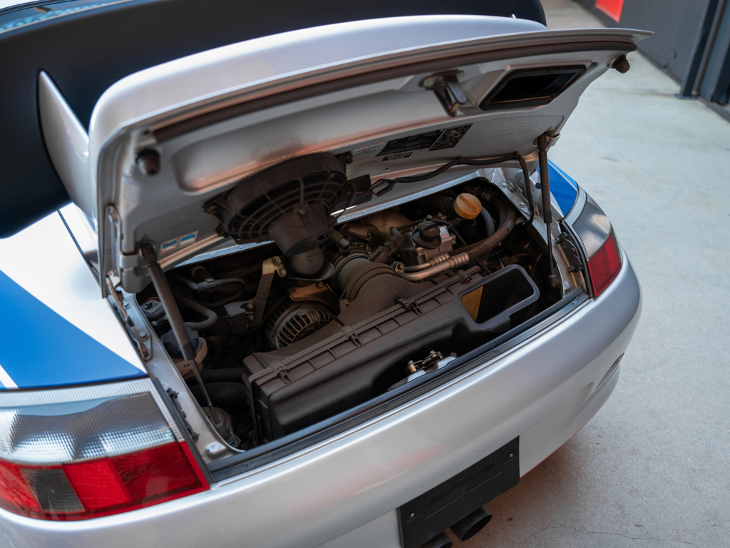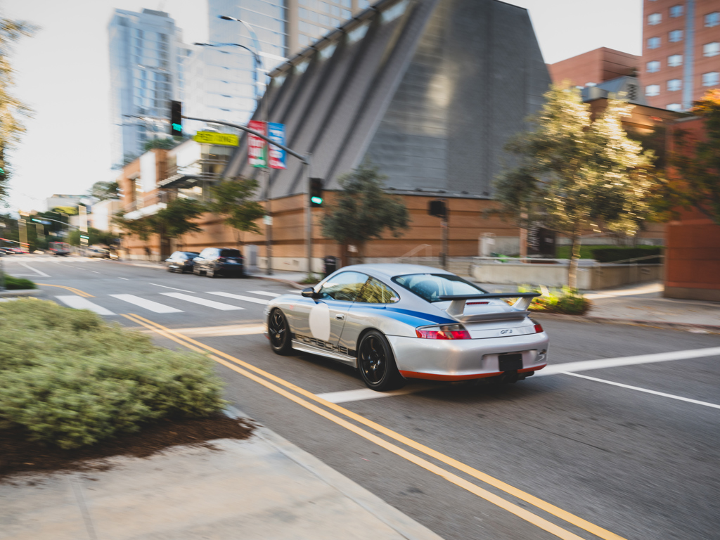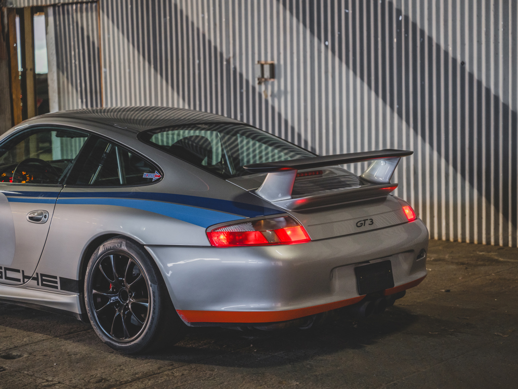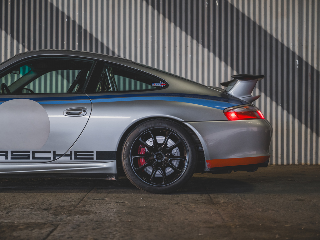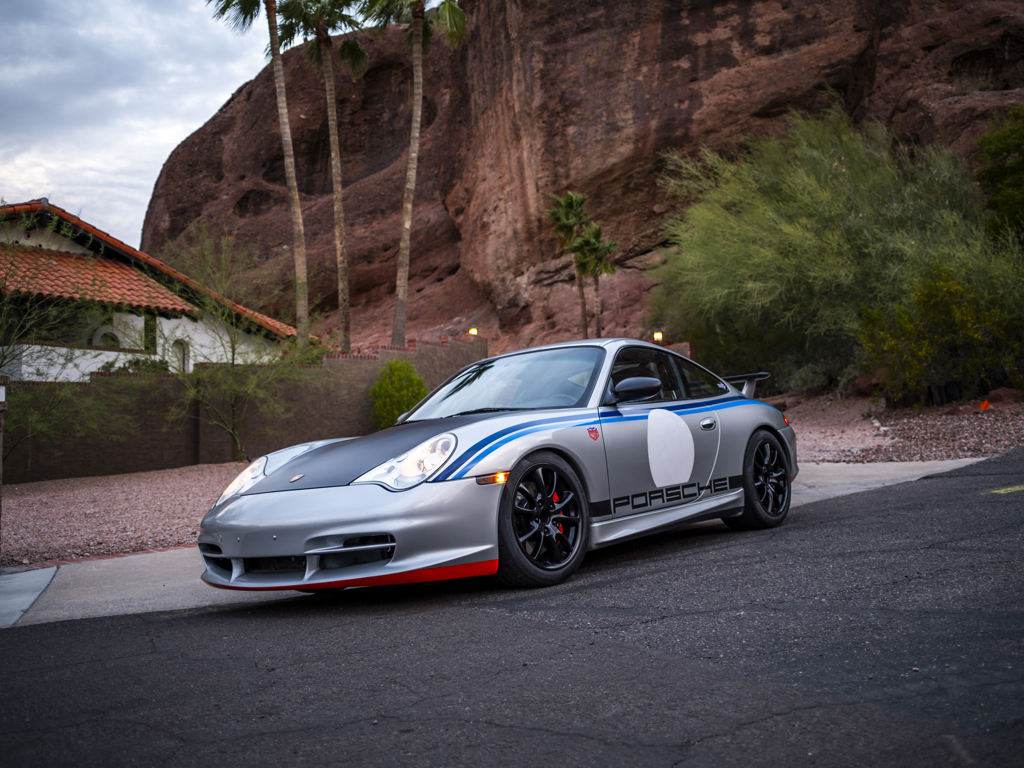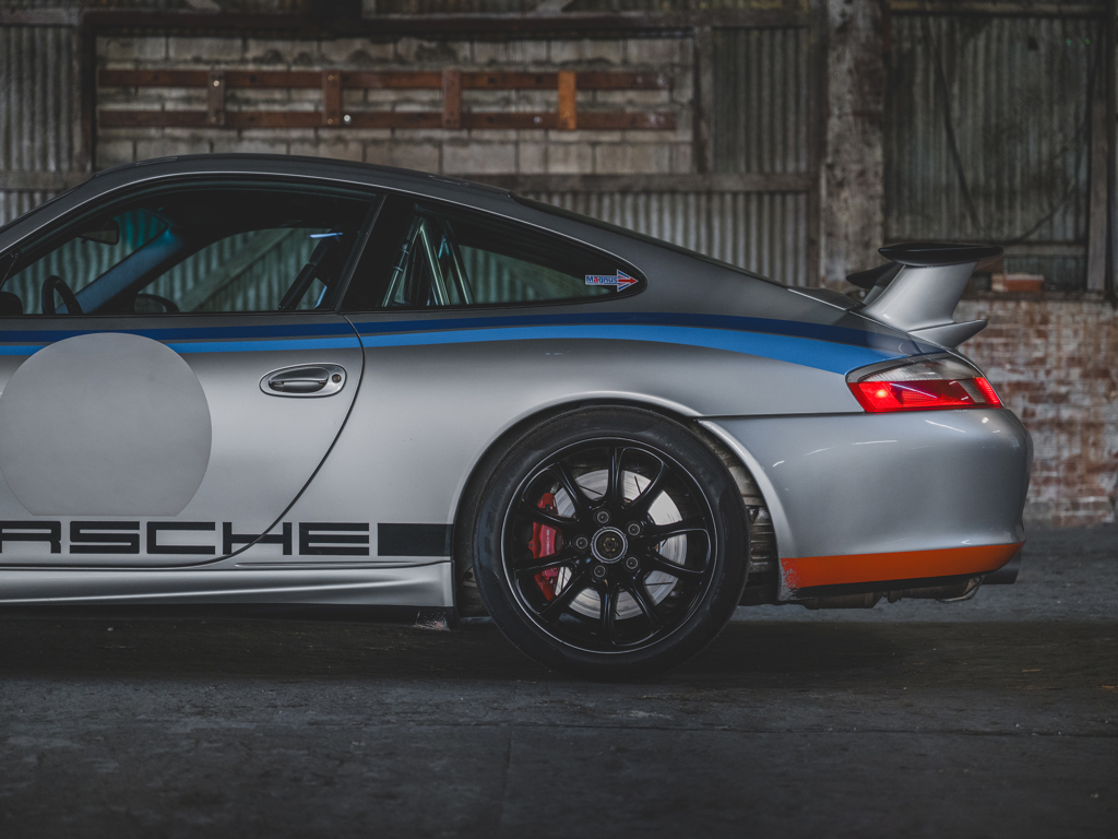 First year for the groundbreaking 911 GT3 in the United States A California car since new, acquired by Magnus Walker in 2016 Factory-correct Arctic Silver over Grey Natural Leather with numerous factory options Wearing Walker’s signature style with black hood, rear spoiler, and wheels, orange lip spoiler, blue stripes, and racing-number roundels applied under present ownership Presents with honest patina inside and out, ideal for further enjoyment at track days A well-loved example of Porsche’s groundbreaking motorsport-oriented road car