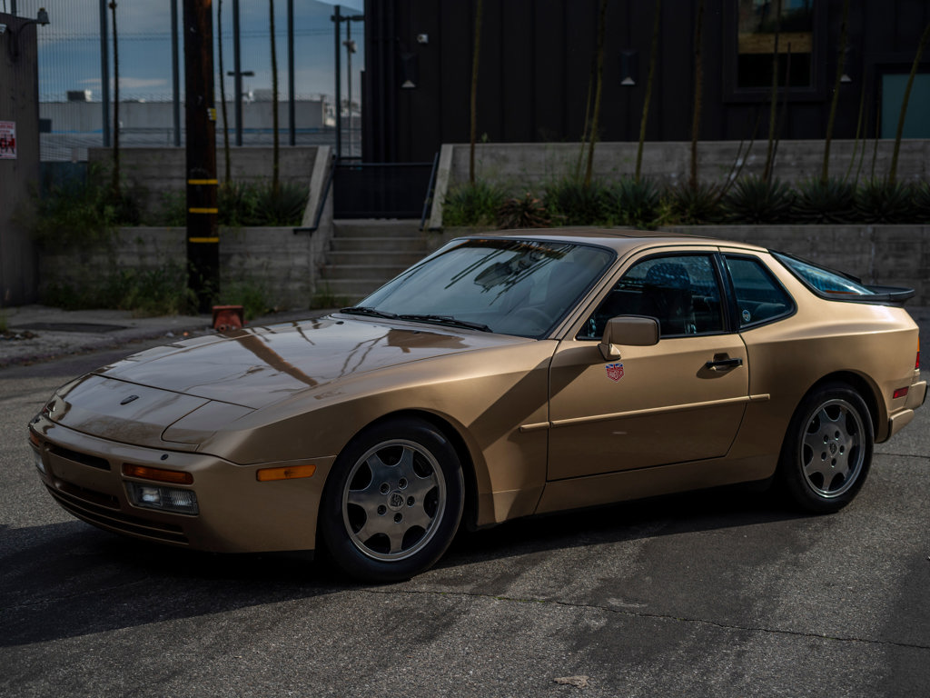 This 1988 Porsche 944 Turbo, part of Magnus Walker's collection, is a well-maintained example with 131,913 miles. It features a turbocharged engine, five-speed manual transaxle, and is believed to be a lifetime California car, presented in Almond Beige Metallic.