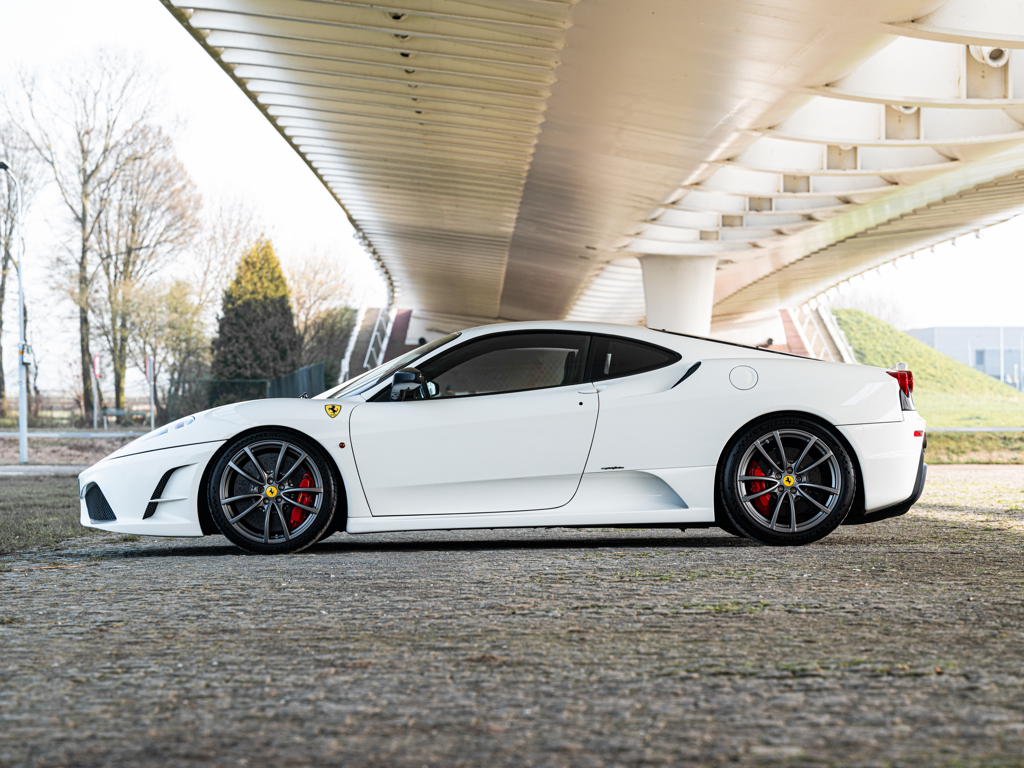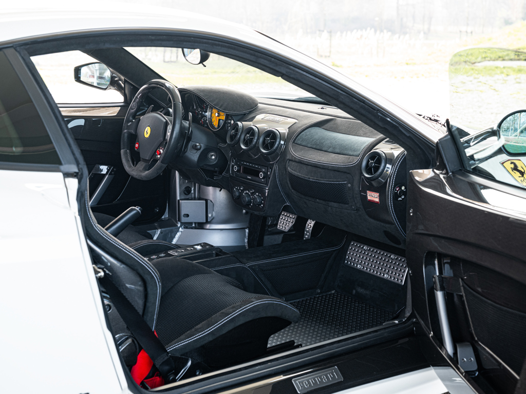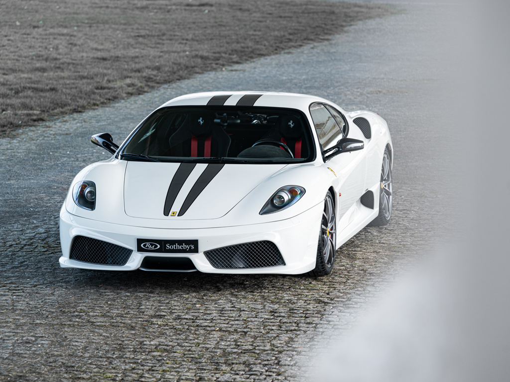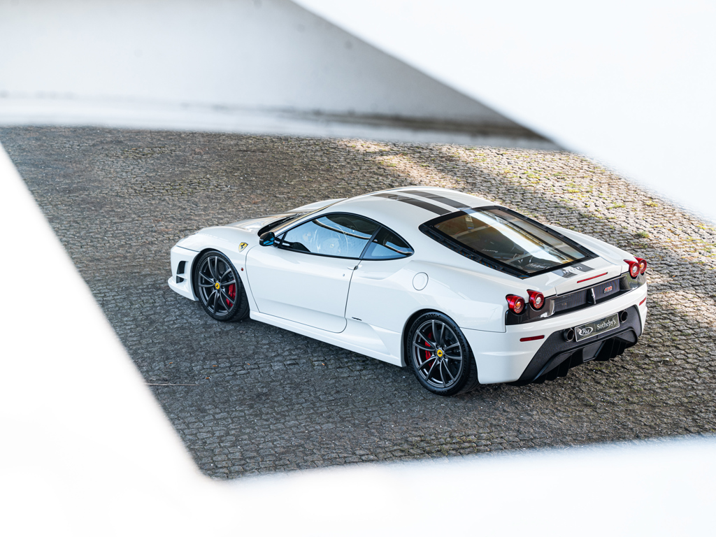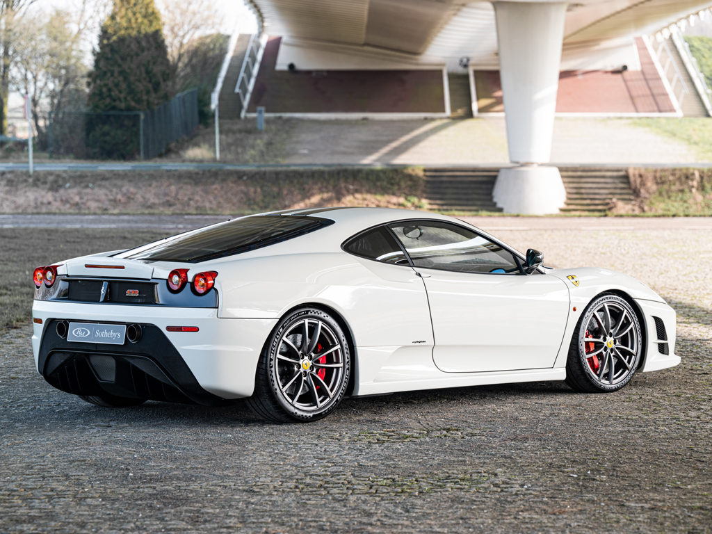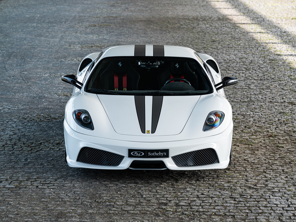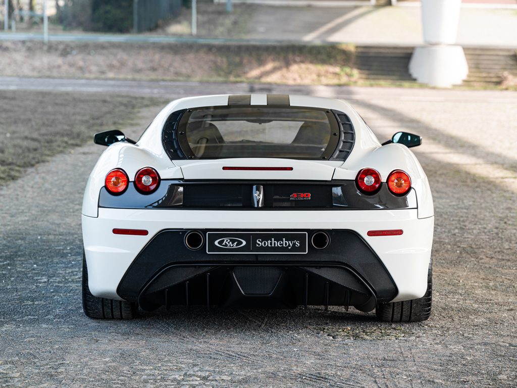 €275,000 - €325,000 EUR The lighter and more powerful 430 special edition; honed for track driving after extensive testing by seven-time Formula 1 Drivers’ World Champion Michael SchumacherFinished in Bianco Avus with optional racing stripes and Scuderia shields over black Alcantara upholstery Equipped with a naturally aspirated, 4.3-litre V-8 engine that delivers 510 horsepower via an automated-manual “Superfast2” transmission for a top speed of 319 km/hOffered with its Ferrari books and manuals with tool pouch and tyre inflator kit Presented in the striking and seldom-seen shade of Bianco Avus, this European-specification Ferrari 430 Scuderia offers a compelling interpretation of one of Maranello’s most focused and celebrated road cars.