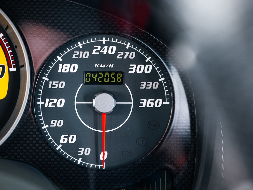 This 2026 Ferrari 430 Scuderia is a track-honed special edition finished in Bianco Avus with black Alcantara interior. It features a 4.3-liter V-8 engine, “Superfast2” transmission, and a documented service history, with 42,058 kilometers on the odometer.