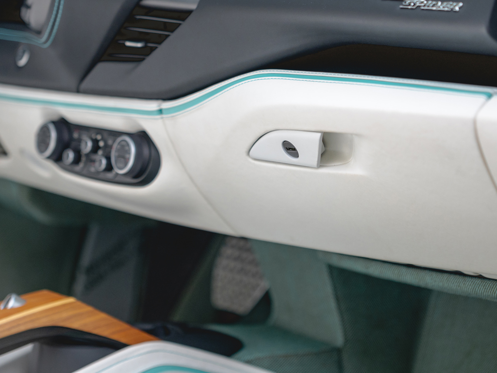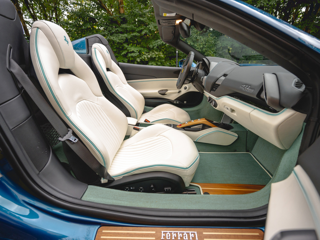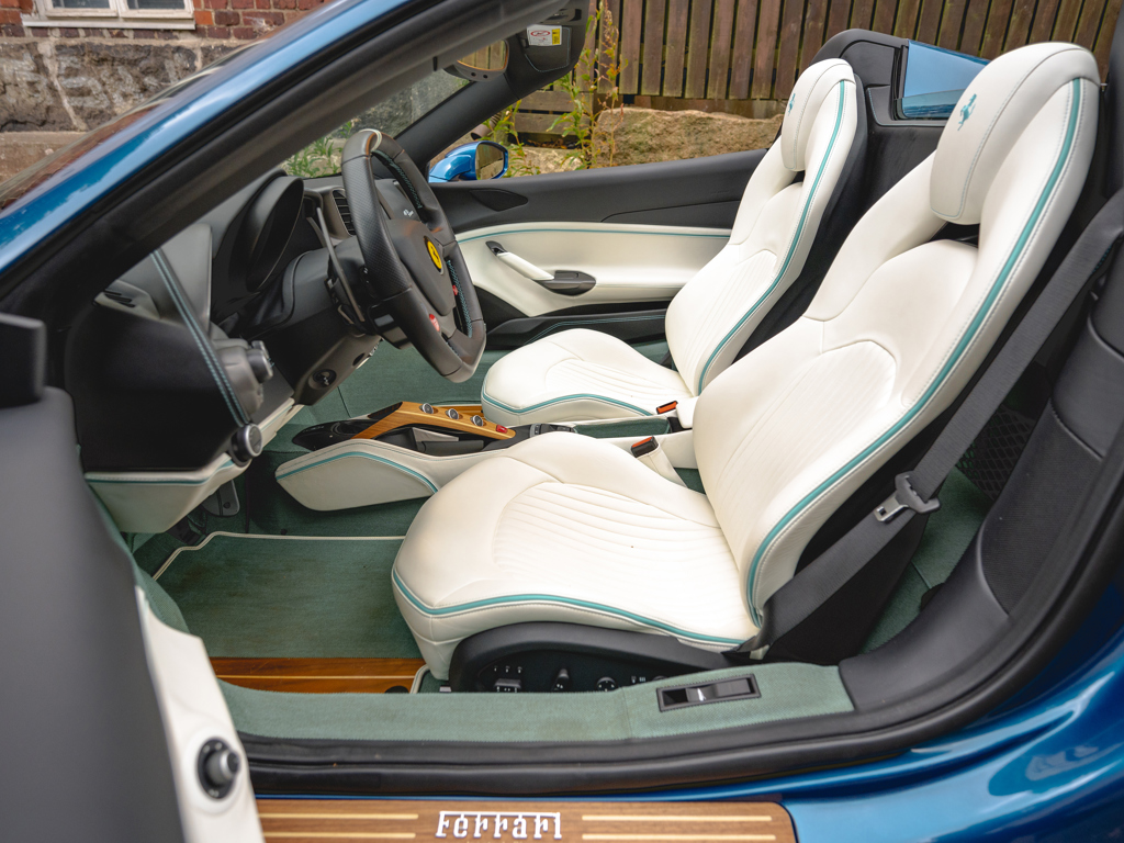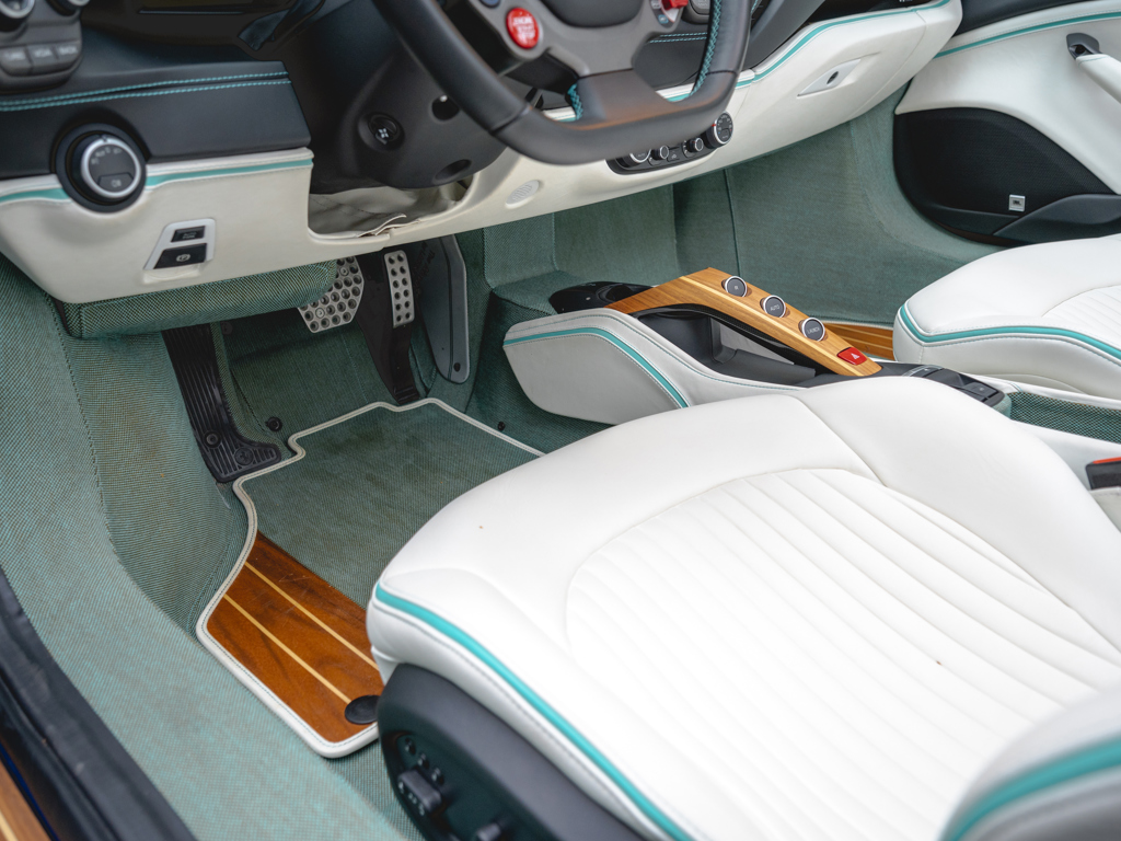 €250,000 - €320,000 EUR Configured extensively via the Ferrari Tailor Made personalisation programmeSensational Riva yacht-inspired specification, featuring Blu Chiaro Metallizzato with Bianco King and Blu Tiffany lower accentsComplemented by a cabin of white leather with Blu Tiffany stitching plus Italian walnut and maple wood inlaysBuilt for its consigning and sole owner; noted by a dedicated Tailor Made dashboard plaque Displays 9,925 kilometres at the time of cataloguingOffered with matching bespoke fitted luggage set, seat and steering wheel covers, tool kit and tyre inflator, maintenance invoices, owner’s guides, and service book Few names in luxury evoke the same timeless allure as Riva.