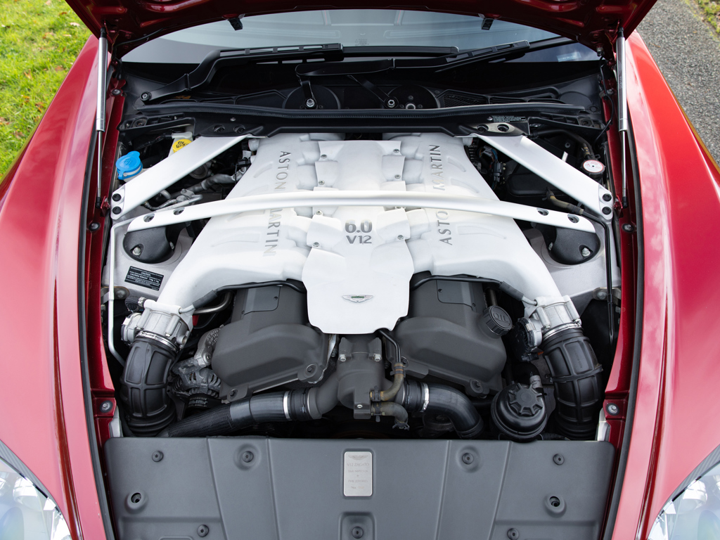 This Aston Martin V12 Zagato is one of only 18 RHD models produced, with under 6,000 miles from new. It features a Diavolo Red exterior, Obsidian Black leather interior, and a six-speed manual transmission, making it a rare and desirable analog hero.
