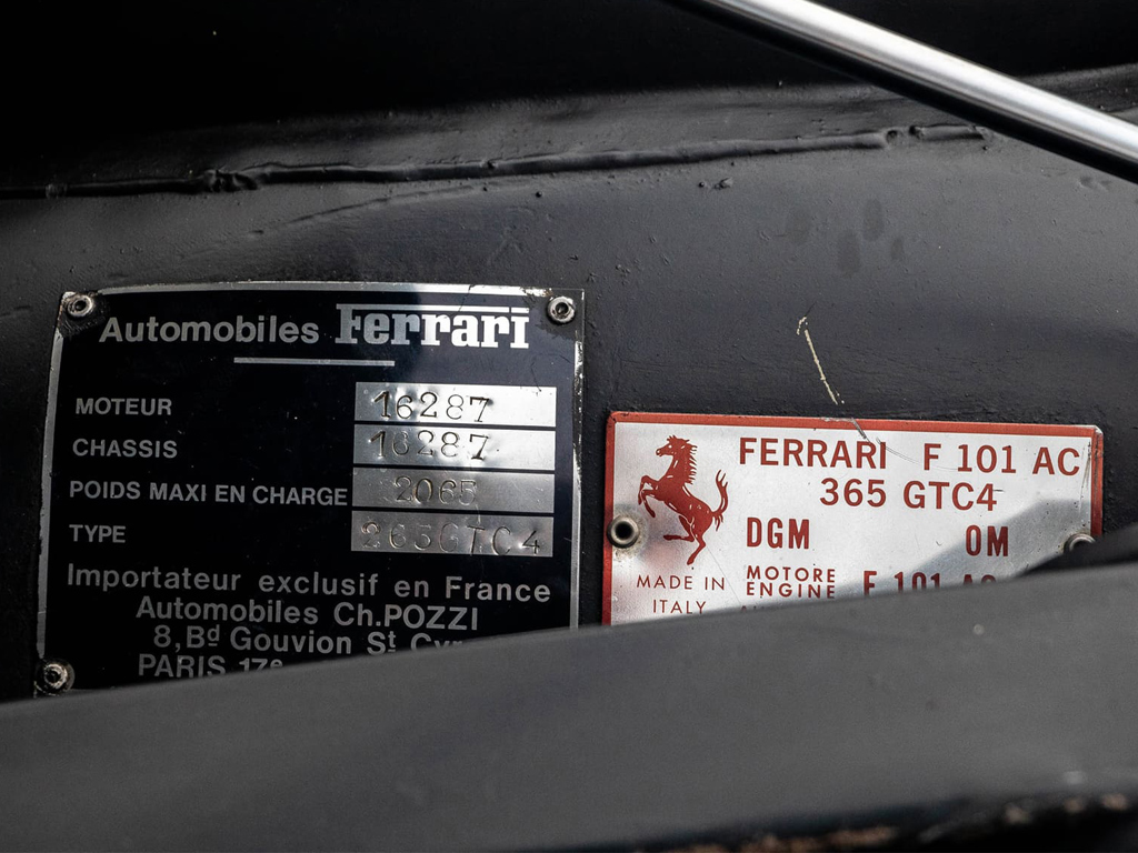 Asking | €275,000 EUR Ferrari Classiche CertifiedRetains its original chassis, engine, and gearboxFinished in its original colors of Blu Ribot over BeigeFull documented historyThe second to last example built This is the second to last produced Ferrari 365 GTC/4.