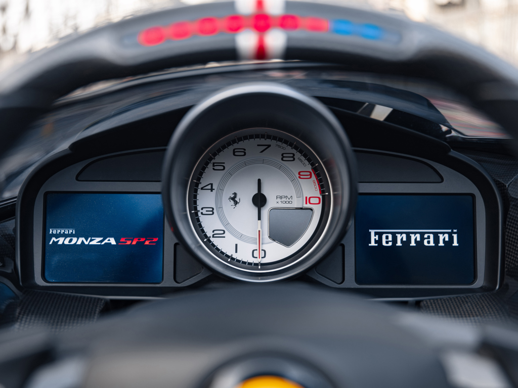 Asking | €2,900,000 EUR French delivery example, single ownership, and just under 7,950 km from newStunning Nero Stellato paintwork with livery in Rosso Corsa and Bianco KingExceptionally well equipped with numerous options, including front and rear parking cameras and the suspension lifterRegularly serviced by Charles Pozzi Paris, last serviced in February 2025Well-enjoyed on numerous events, including 500 Ferrari Contre le Cancer and the Ferrari Cavalcade Specified in a sinister, yet subtle, colour combination of Nero Stellato over a Rosso leather interior, this Ferrari Monza SP2 is a stunning example of one of Ferrari’s most attractive modern supercars.This Monza SP2s livery features a single Rosso Corsa stripe with Bianco King pinstriping running up the bonnet of the car on the driver’s side and topping the speedster hump behind the driver’s seat.
