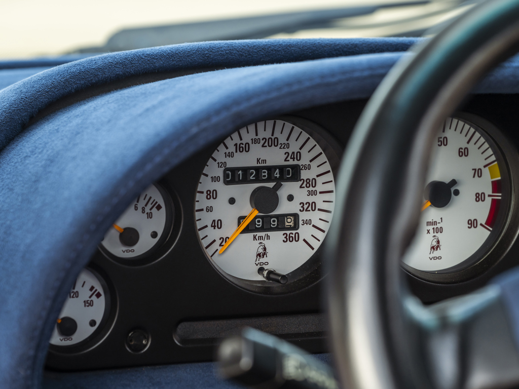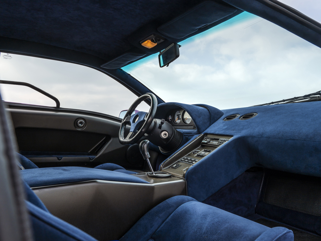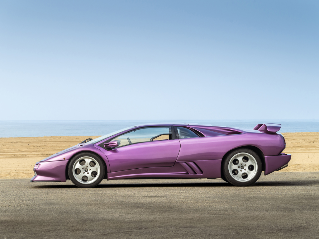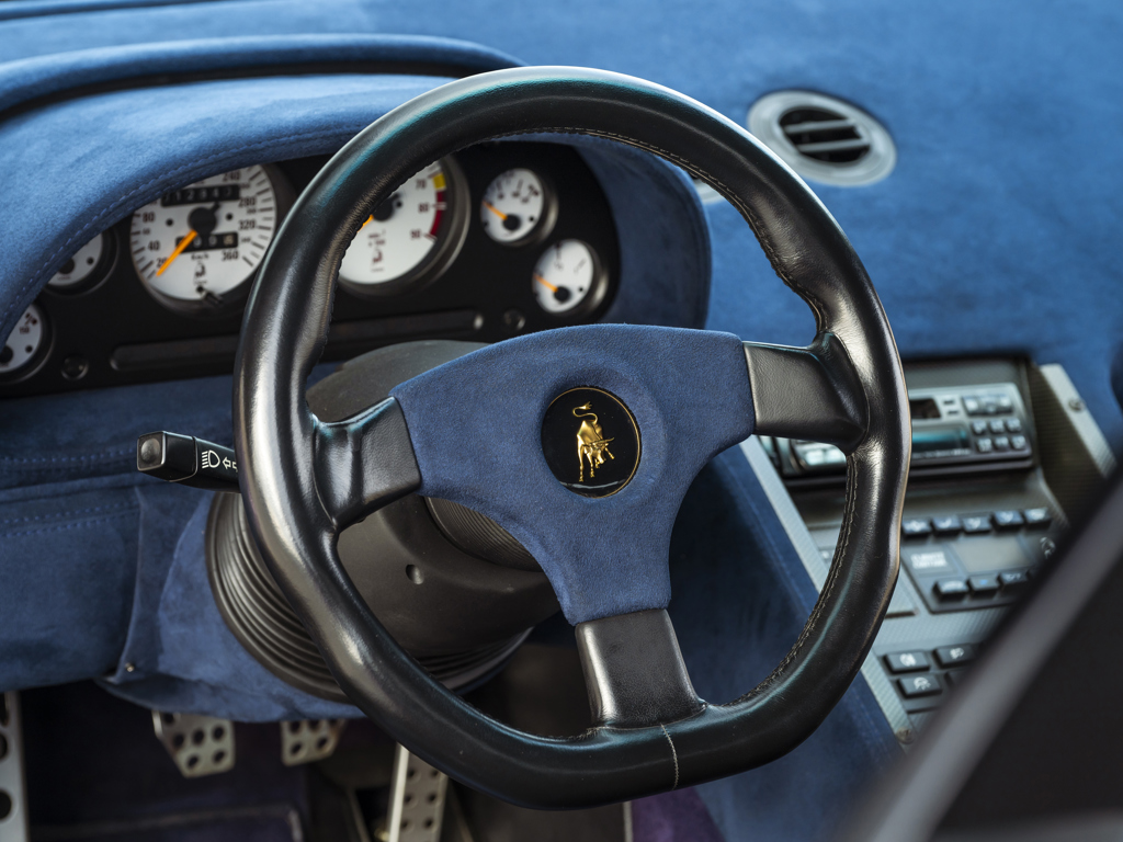 in 2023Approximately $57,000 of mechanical and cosmetic service work carried out in 2024, minimal mileage sinceShowing just under 12,900 km from new, believed to be originalPresented in its original colors of Viola SE30 over Blu Alcantara interiorOne of only 150 examples produced Launched to celebrate Lamborghini’s thirtieth anniversary in 1993, the Diablo SE30 was marketed by Lamborghini as a street legal race car, seeing not only a boost in power but also a reduction in weight over its siblings, making for arguably the most exciting car in the company’s illustrious history.Mechanically, the SE30 retained Lamborghini’s legendary V-12 but featured a revised fuel system, magnesium intake manifolds, and a free-flow exhaust that combined to increase output to 525 horsepower.