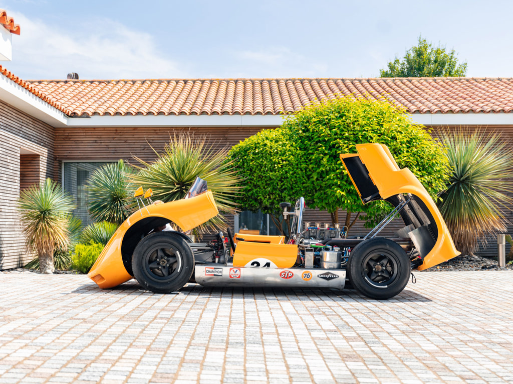 This is a 1966 McLaren M1B, one of 28 customer specification chassis, with a rich racing history. It was rebuilt to original specifications by Paul Lanzante and is eligible for historic racing events.