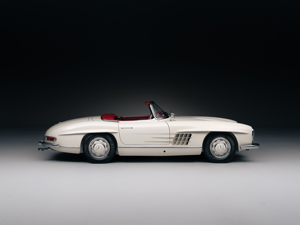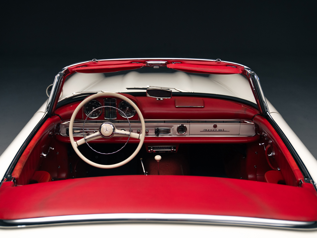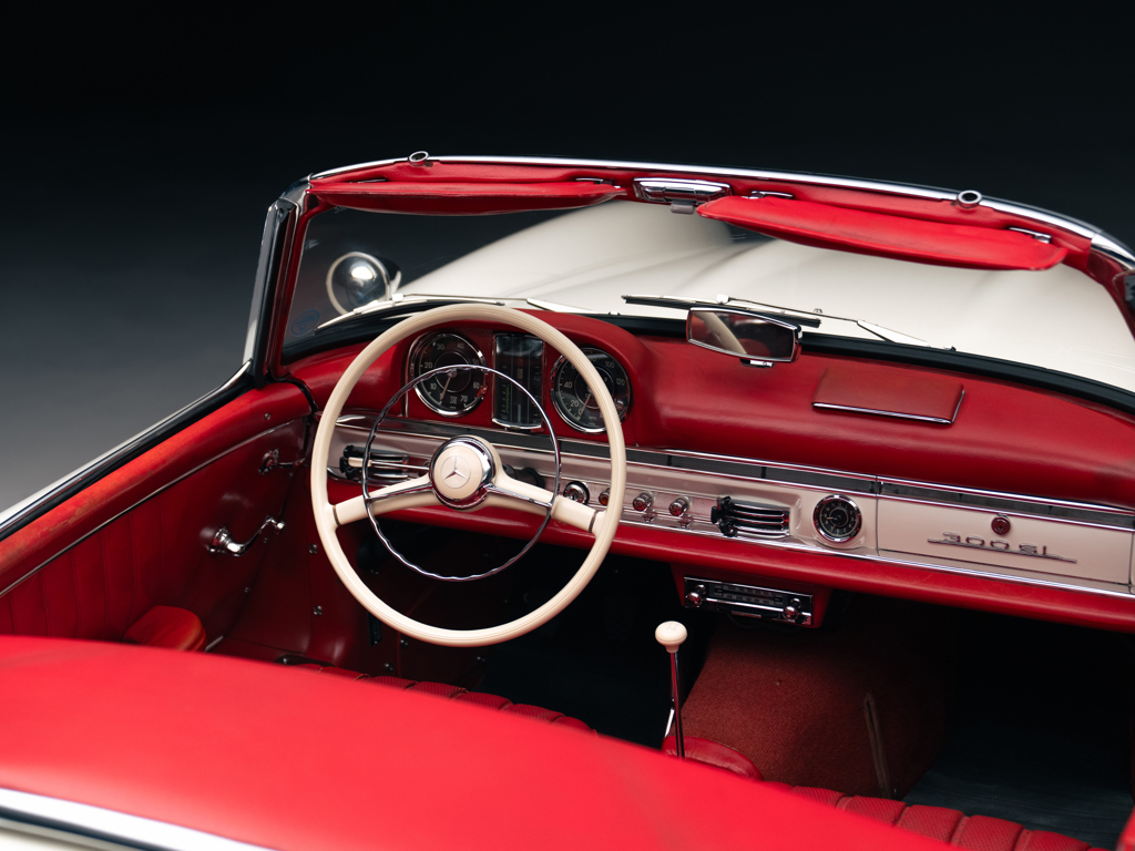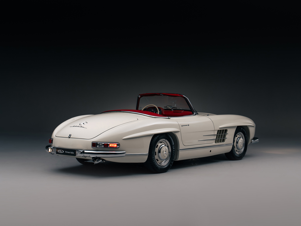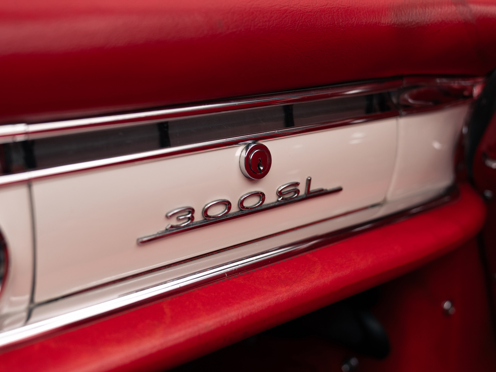 Asking | £1,495,000 GBP The penultimate 300 SL Roadster built; one of only three delivered in 1964Rare and highly desirable specification; alloy-block engine and disc brake exampleRetains its matching-numbers chassis, body, gearbox, and rear axle Fabulously original, unmolested and presented in it’s factory-correct colour scheme of White over original Red leather interiorAccompanied by factory hardtop roof, owner’s guides in their folio, and a two-piece fitted luggage setDocumented by a comprehensive history file with invoices dating back to 1967, Mercedes-Benz Classic Certificate, and copies of the factory data cards Please note that this vehicle is titled as 1964 This Mercedes-Benz 300 SL Roadster holds a truly fascinating origin story, which has been extensively researched over the years with support from the factory.