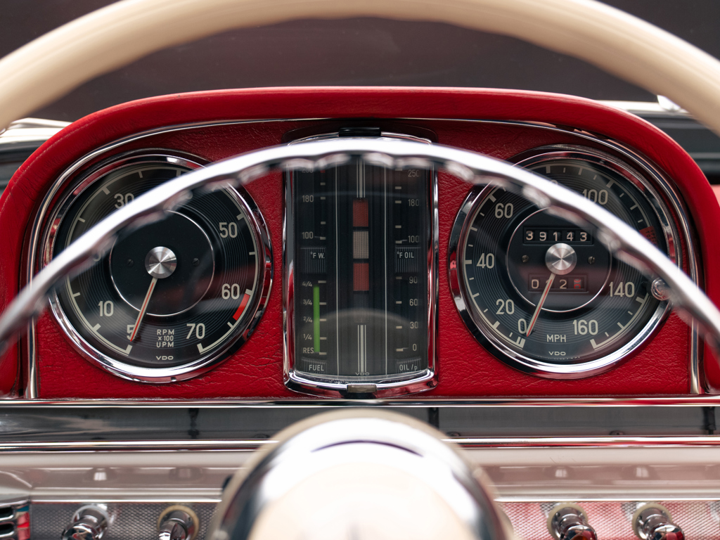 Out of just 26 examples built in 1963, chassis number 198.042.10.003257 offered here was specified with White (DB 050) paintwork over a Red (DB 030) leather interior....