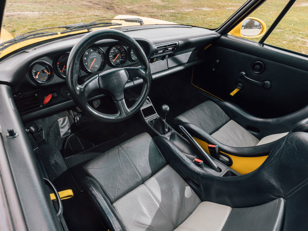 This 1993 Porsche 911 Carrera RS 3.8, one of only 55 built, is finished in Speed Yellow. It has had a recent service and inspection, with approximately 77,600 km from new.