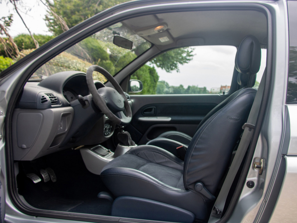 The 3.0-lire V-6 engine, sourced from the PSA group, was upgraded to around 230 horsepower and placed in the middle of the vehicle, where standard Clios have rear seats - making this car a two-seater hot hatch.