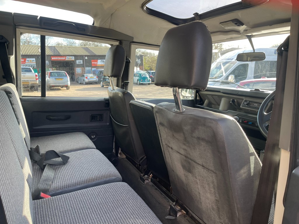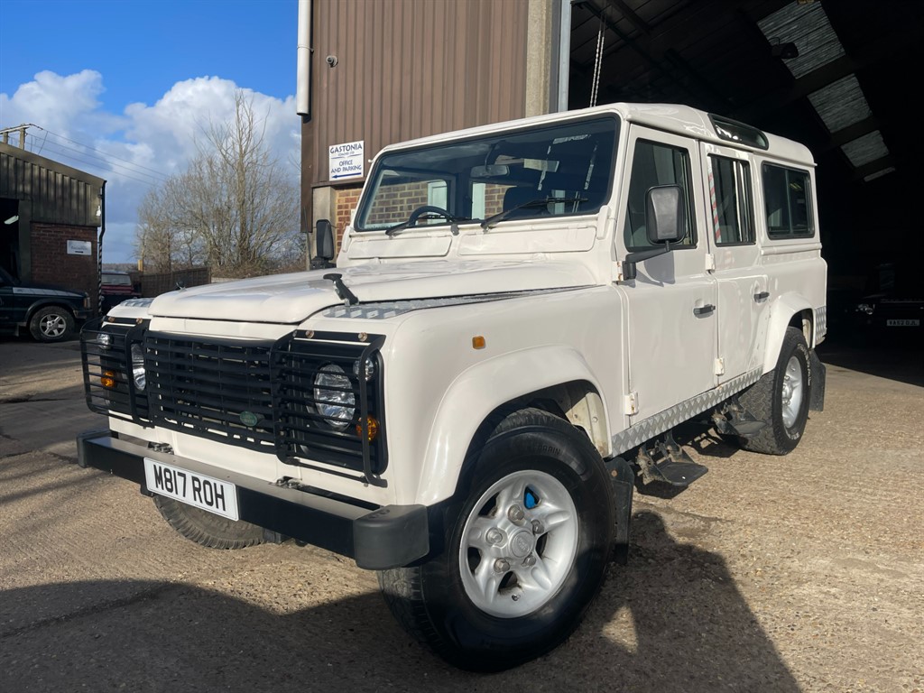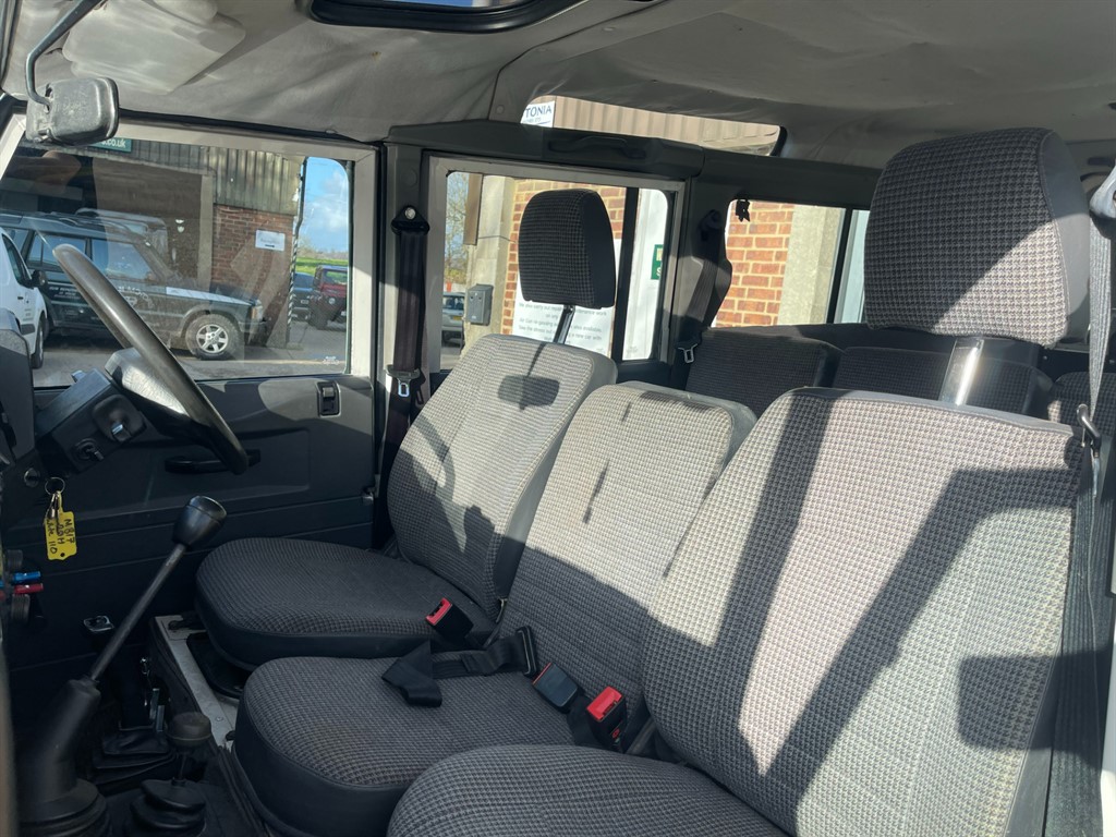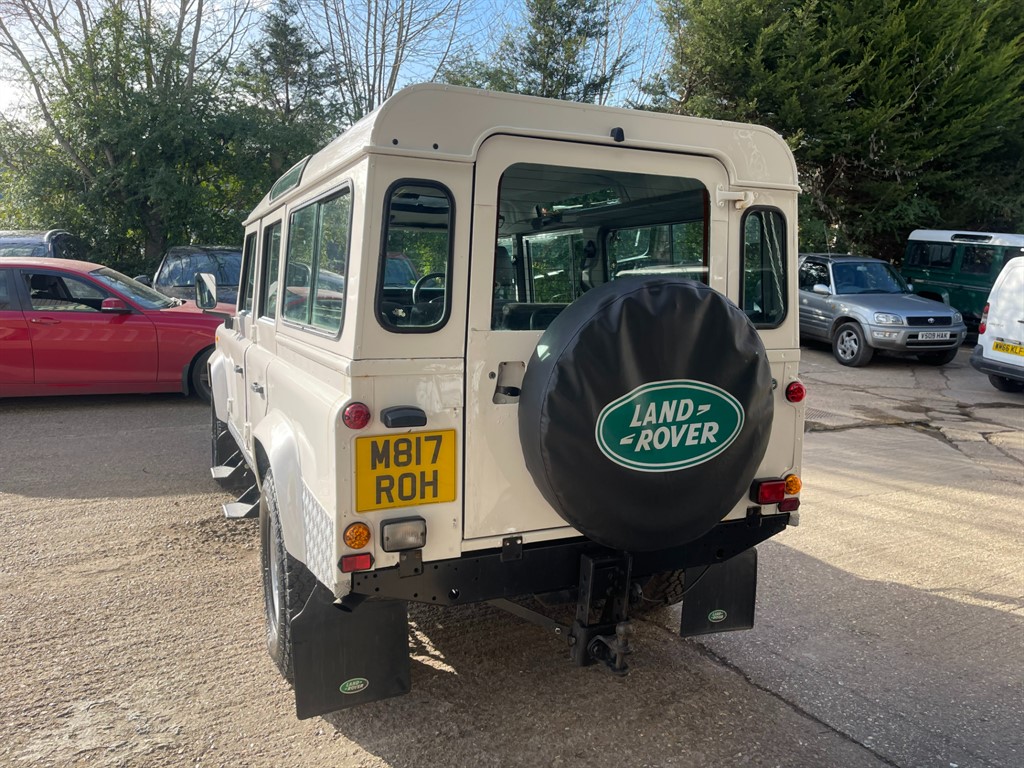 STUNNING 1995 LAND ROVER DEFENDER 110 COUNTY STATION WAGON...FINSIHED IN ALPINE WHITE THAT DOES SHOW A FEW SIGNS OF AGE AND PATINA BUT IS IN PERFECTLY PRESENTABLE AS IS...156,000 MILES FROM NEW...RUNS AND DRIVES SUPERB...FACTORY 300TDI AND R380 GEARBOX THAT ARE KNOWN FOR BEING THE MOST RELIABLE ENGINE AND GEARBOX LAND ROVER EVER FITTED TO A DEFENDER...U.S.A EXPORTABLE NOW...NEARLY FACTORY ORIGINAL BAR A FEW NICE UPGRADES, THESE INCLUDE, BLACK FRONT BUMPER WITH END CAPS, BLACK STANDARD FRONT GRILL AND LIGHT SURROUNDS, LAND ROVER GRILL BADGE, DEFENDER BONNET BADGE, CRYSTAL CLEAR HEADLAMPS, COLOURED LED LIGHT KIT FRONT AND REAR, SILVER WING TOP CHEQUER PLATING, STANDARD BLACK VENTS, RECENT NEW WINDSCREEN AND SEAL, 16 INCH SILVER DEEP DISH ALLOYS, FOLDING SIDE STEPS, TOW BAR AND TOWING ELECTRICS AND MUCH MORE...LIKE THE EXTERIOR THE INTERIOR IS MOSTLY ORIGINAL WITH A FEW EXTRAS, THESE INCLUDE, RADIO AND RADIO SURROUND, 12 SEAT CONFIGURATION WITH A FRONT MIDDLE SEATS AND TWO THREE MAN BENCH...