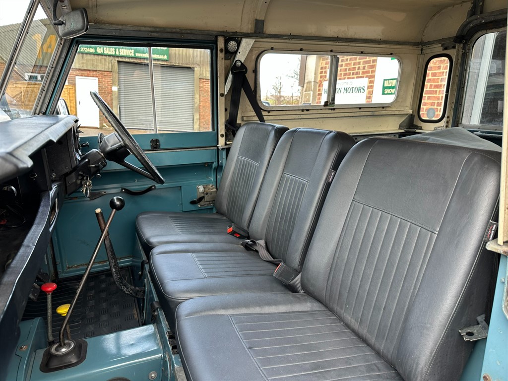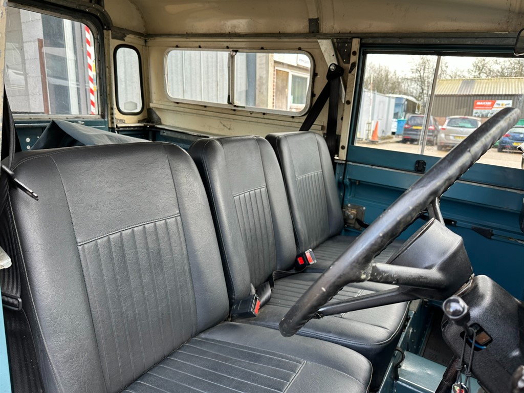 BEAUTIFUL 1981 LAND ROVER SERIES III PETROL 2.3...FINISHED IN MARINE BLUE WITH A CONTRASTING LIMESTONE ROOF AND ORIGINAL STEEL WHEELS...ODOMETER SHOWING 31,000 MILES...FANTASTIC HISTORY...GALVANISED CHASSIS FITTED...EXCELLENT BULKHEAD AND DOORS...RUNS AND DRIVES AS GOOD AS ANY OTHER SERIES III WE HAVE DRIVEN...FITTED WITH A FEW NICE EXTRAS, THESE INCLUDE, GALVANISED FRONT BUMPER, CYRSTAL CLEAR HEADLAMPS, REFURBISHED STEEL WHEELS, REAR MUDFLAPS, TOW BAR AND MUCH MORE, LIKE THE EXTERIOR THE INTERIOR IS FITTED WITH A FEW EXTRAS, THESE INCLUDE DELUXE FRONT SEATS INCLUDING MIDDLE SEAT, FRONT AND REAR RUBBER MATS, BENCH SEATS, LAP BELTS AND MUCH MORE...TO BE SUPPLIED WITH A NEW M.O.T, A FRESH SERVICE AND 12 MONTHS WARRANTY FOR OUR U.K CUSTOMERS, FULL WALKAROUND VIDEOS ARE AVAILABLE UPON REQUEST..., 12 months warranty, 12 months MOT, Excellent bodywork, Black Vinyl interior - Excellent Condition, Tyre condition Excellent, Short wheel-base, 6 seats, MARINE BLUE, Heated indoor showroom.
